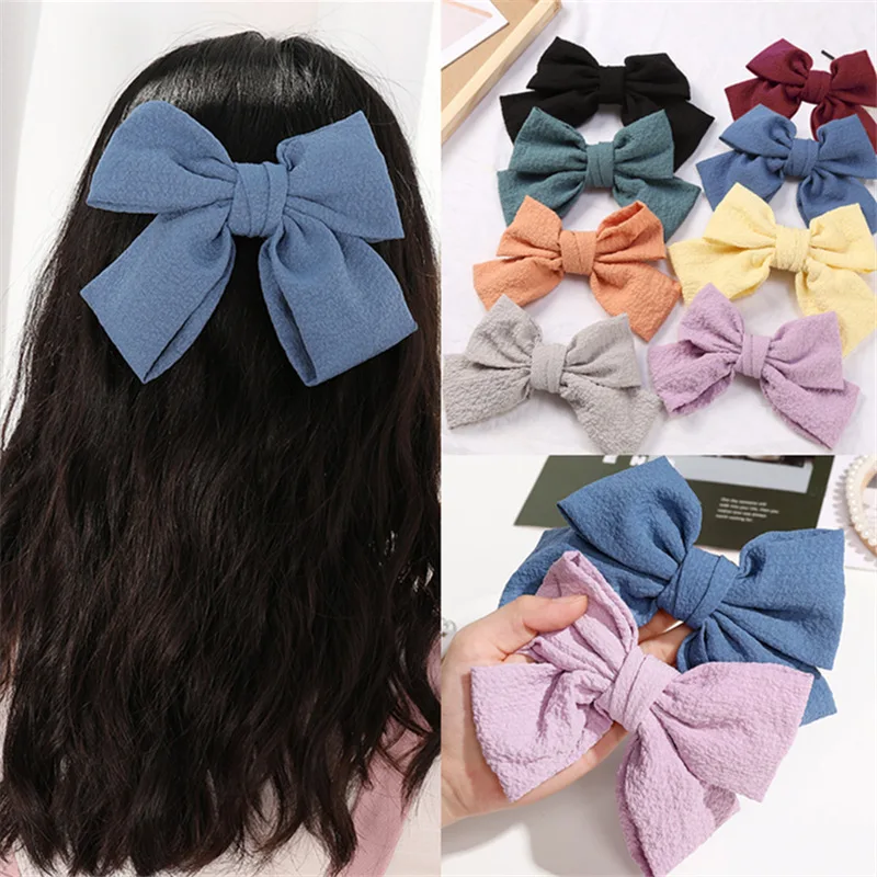 Высококачественные однотонные заколки для волос с большим бантом дл...