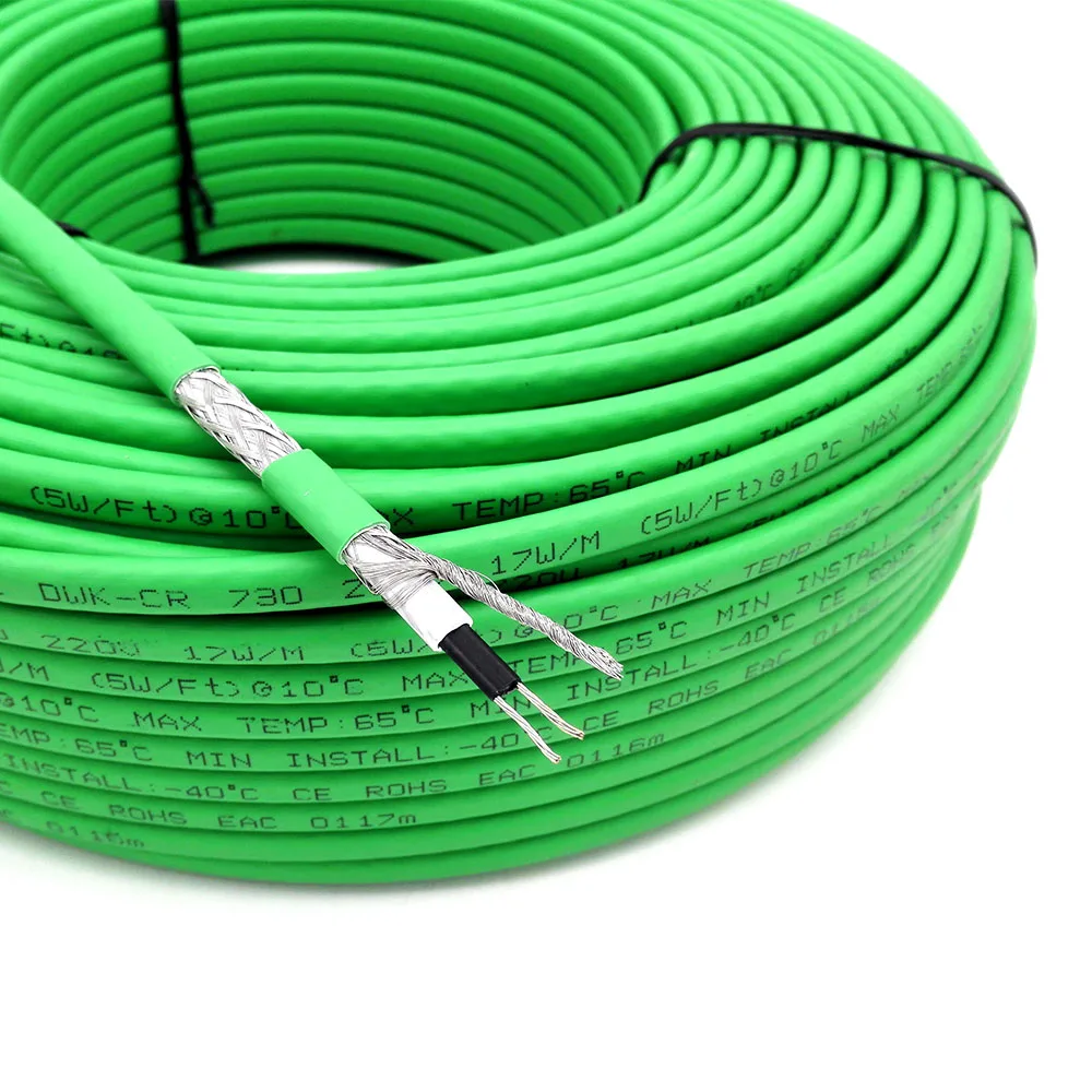 DWK-CR саморегулирующиеся Нагревательные Кабели предназначены для коммерческой защиты от замеров металлических и пластиковых труб, а также для снятия обледенения крыш и желобов. Нагревательные кабели доступны в различных длинах, которые могут настроить любую длину для вас.