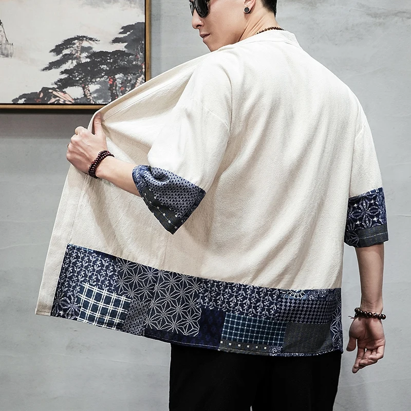 Кимоно мужское традиционное в японском стиле, юката, хаори, уличная одежда, рубашка