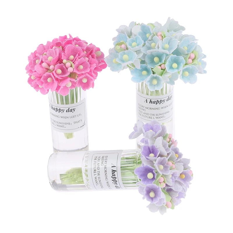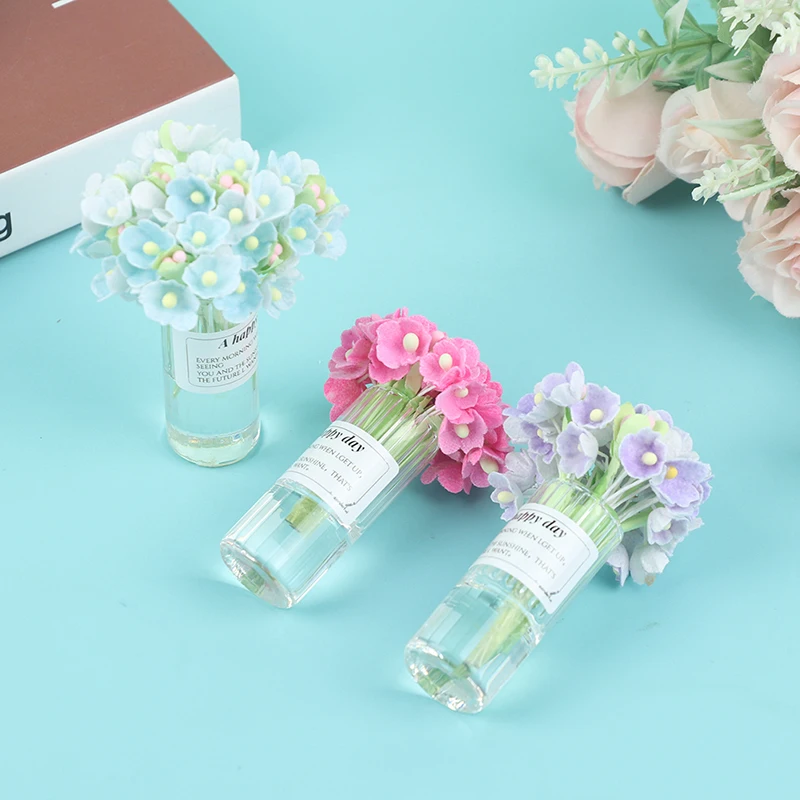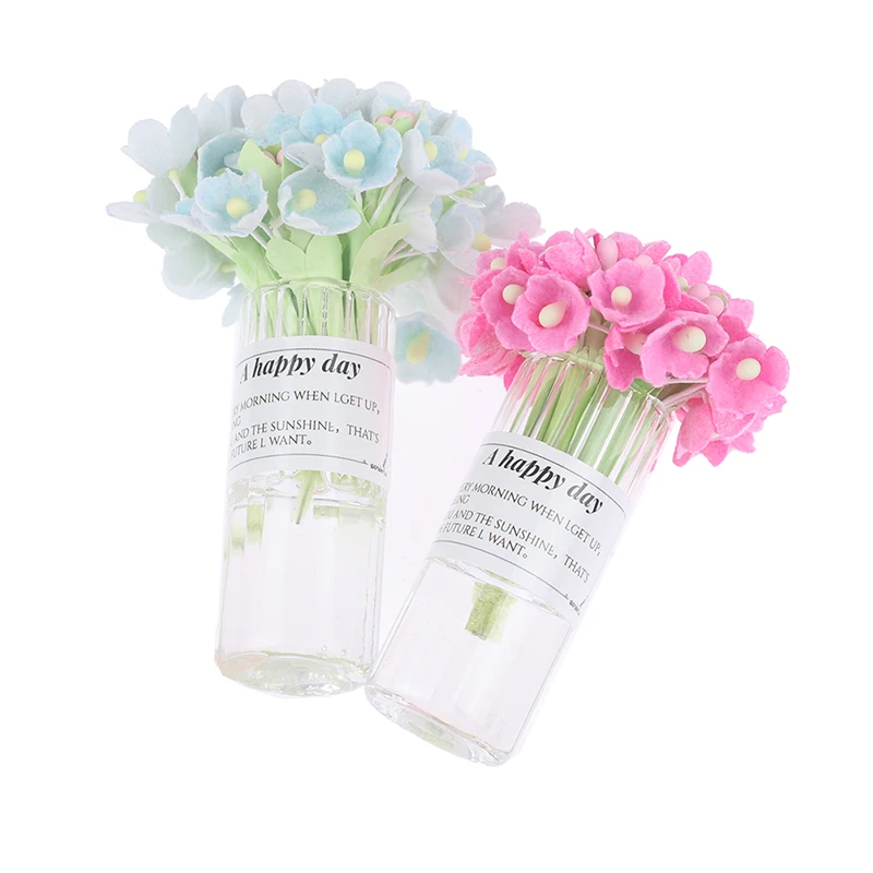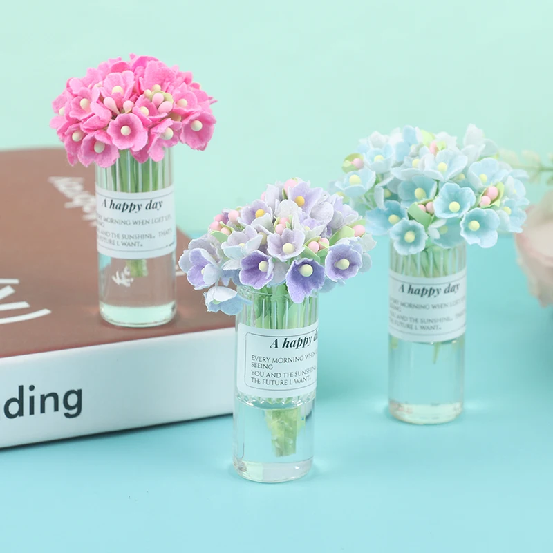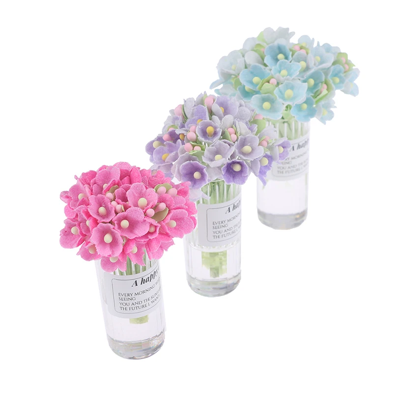 1:12 Кукольный домик миниатюрная Гортензия дерево Цветочная ваза в горшке прозрачная Цветочная композиция для вазы модель игрушки для декора дома