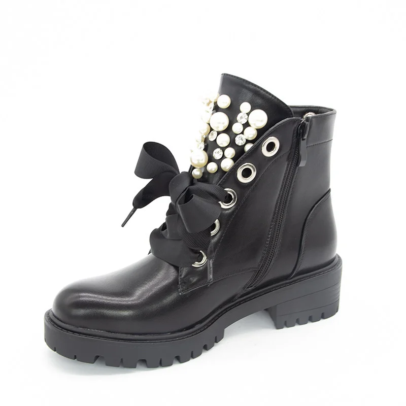 Женские осенне-зимние короткие ботинки, женские кожаные черные ботильоны на платформе, мотоциклетные модные ботинки в стиле панк с жемчужными заклепками, зима 2022