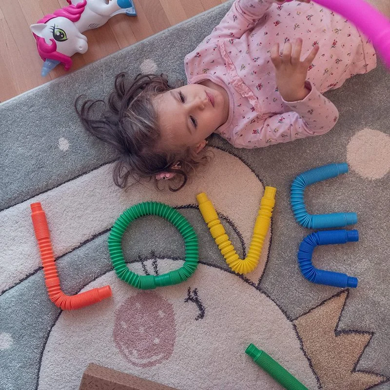 Детская Цветная Пластиковая регулируемая сенсорная игрушка, цветная растягивающаяся трубка, развивающая игрушка, веселая телескопическая трубка