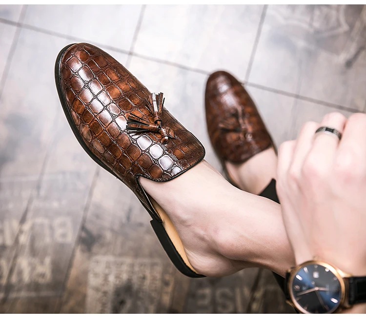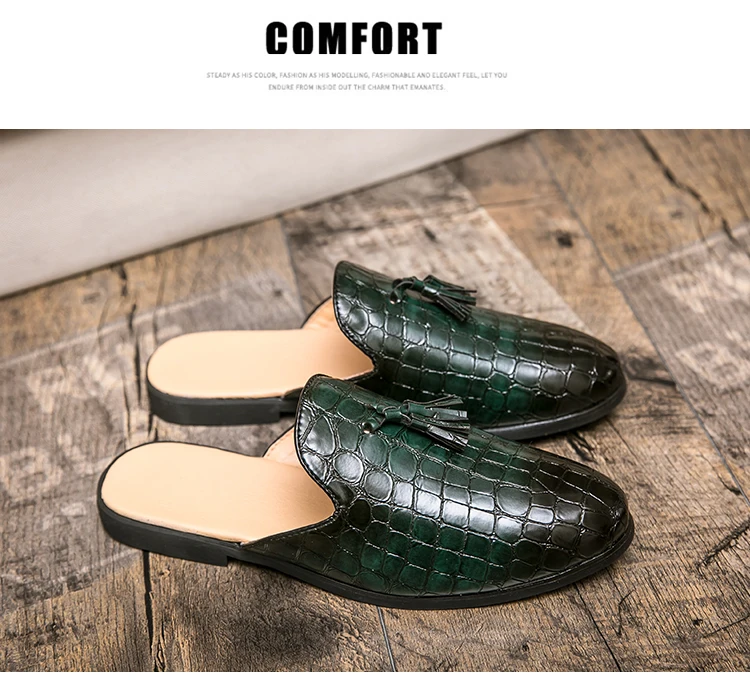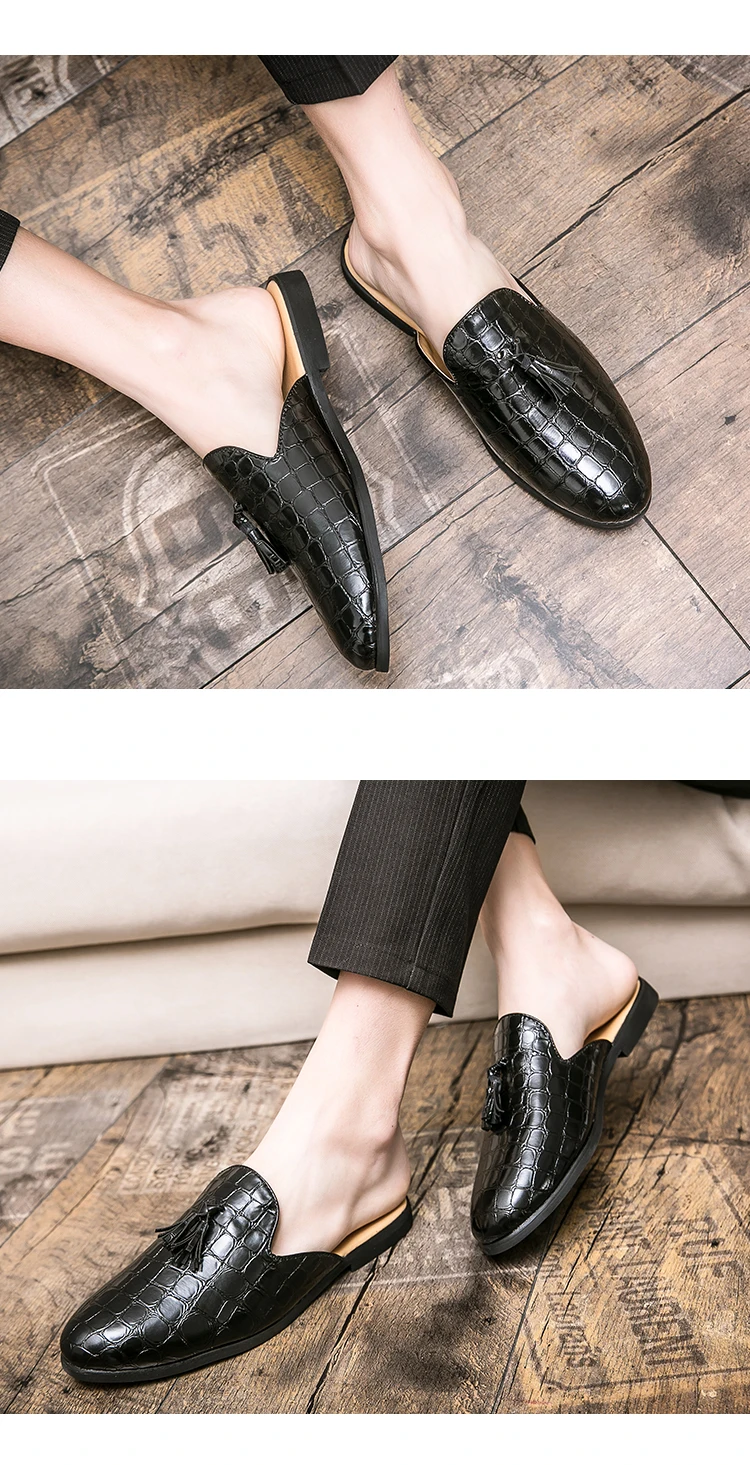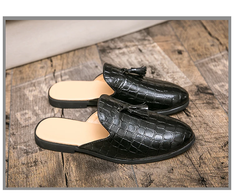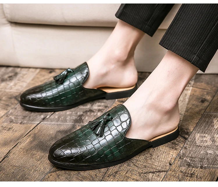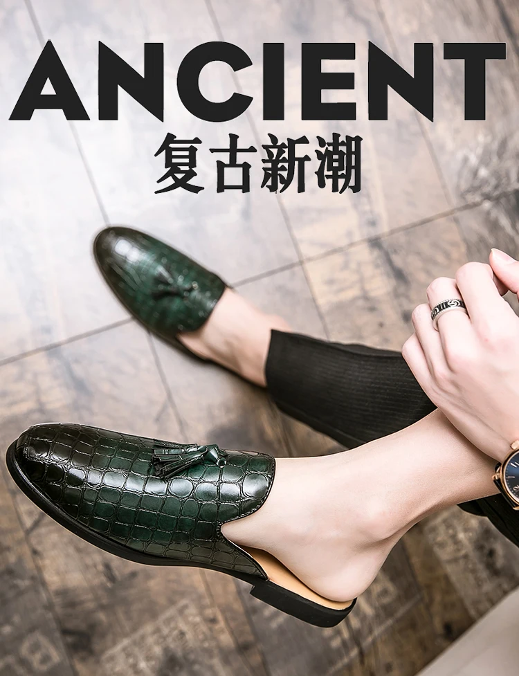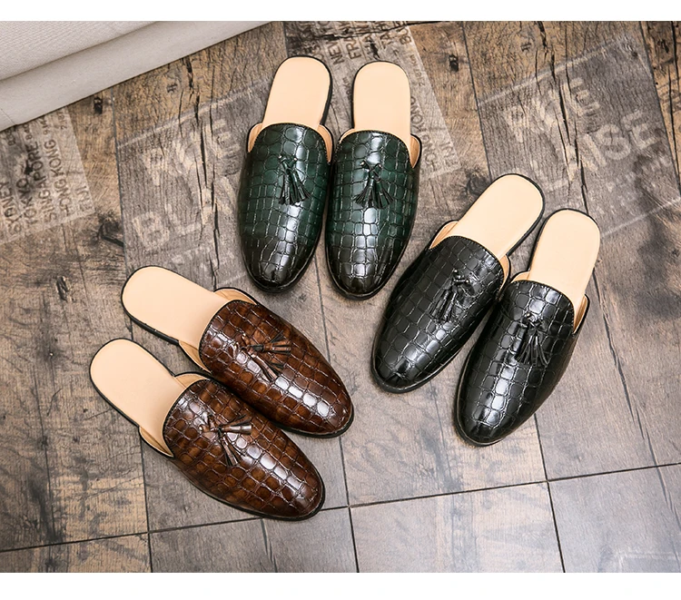 Мужские летние повседневные мюли из искусственной кожи, дышащие удобные лоферы, тапки на низком каблуке, сандалии для отдыха в стиле ретро