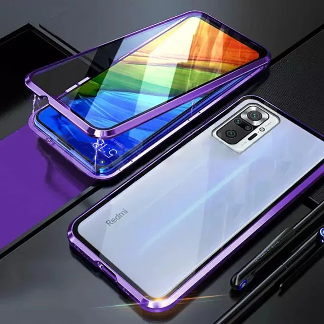 Модный противоударный защитный чехол для Xiaomi Redmi NOTE 10 10S PRO MAX 5G 360, Магнитный чехол для телефона с двойным стеклом