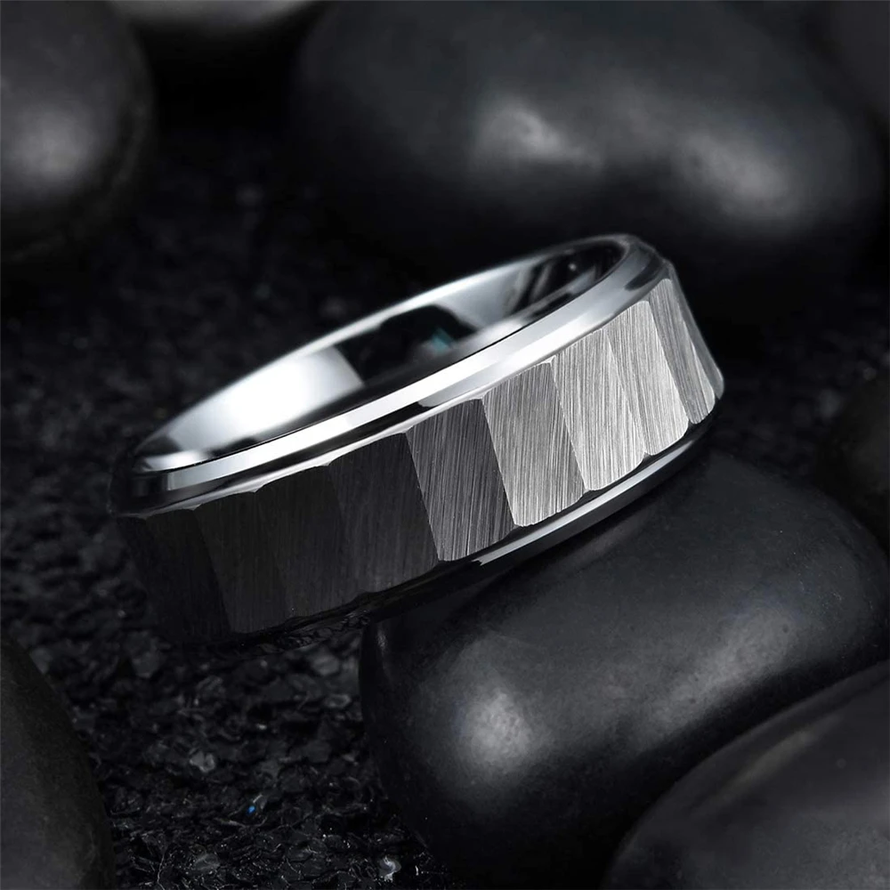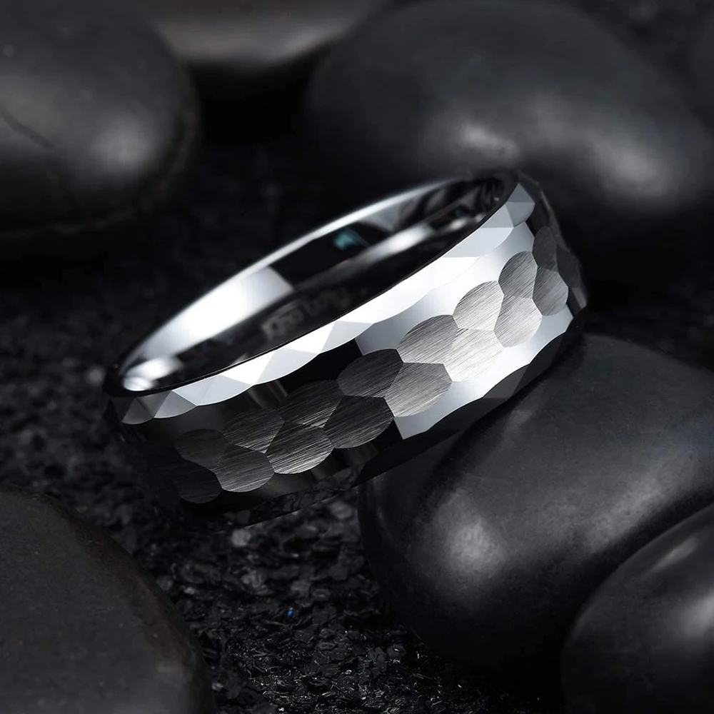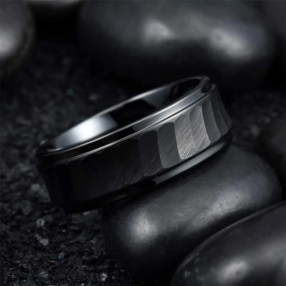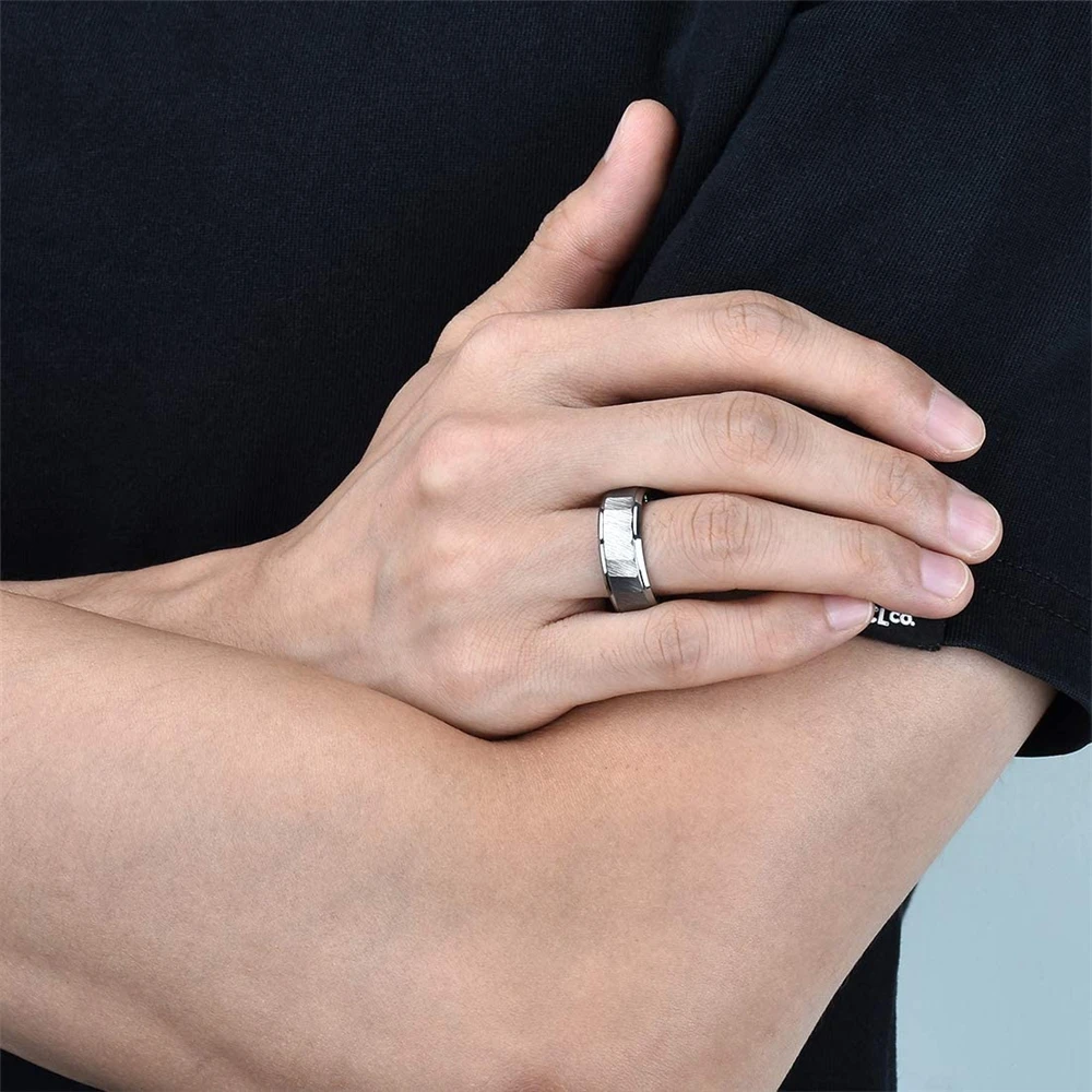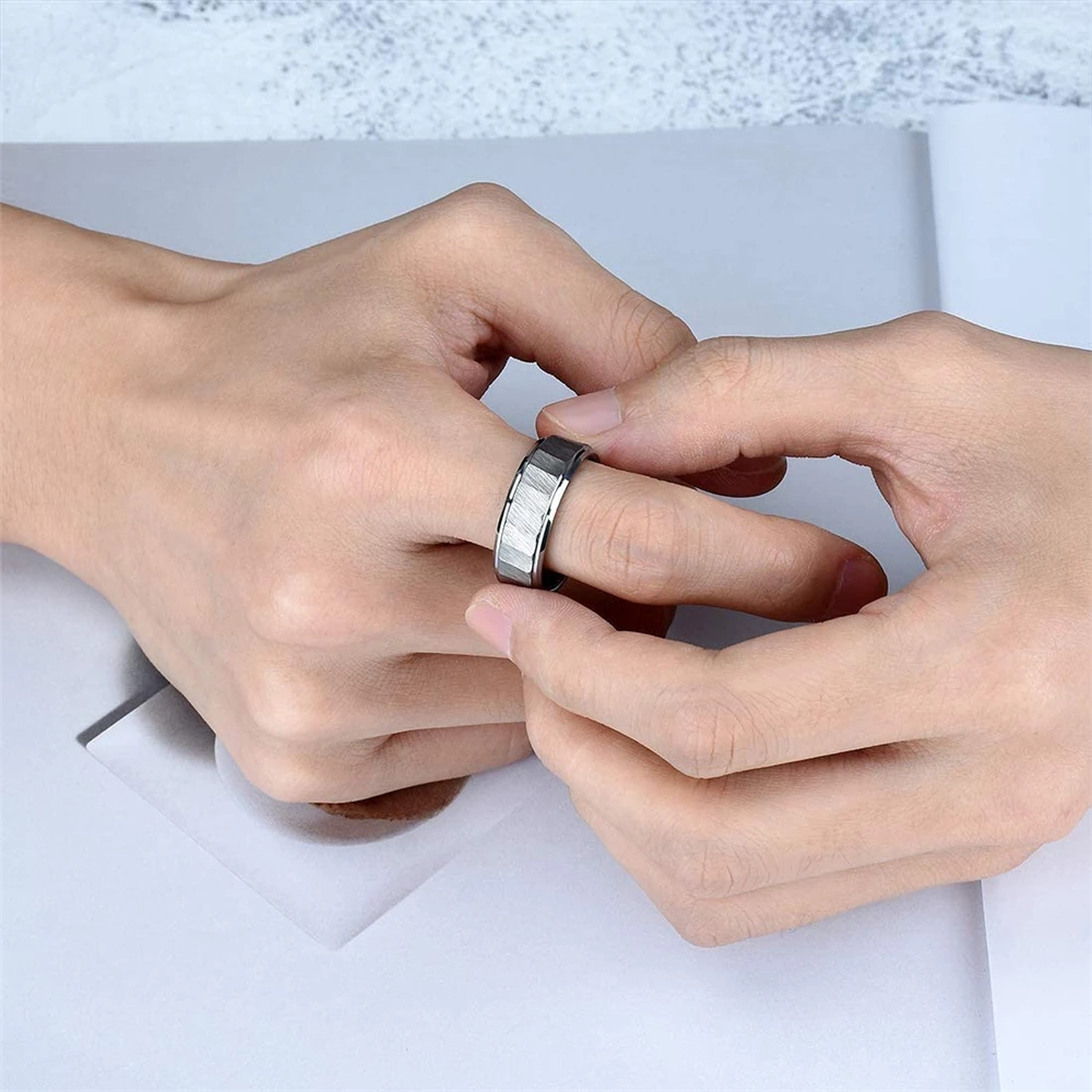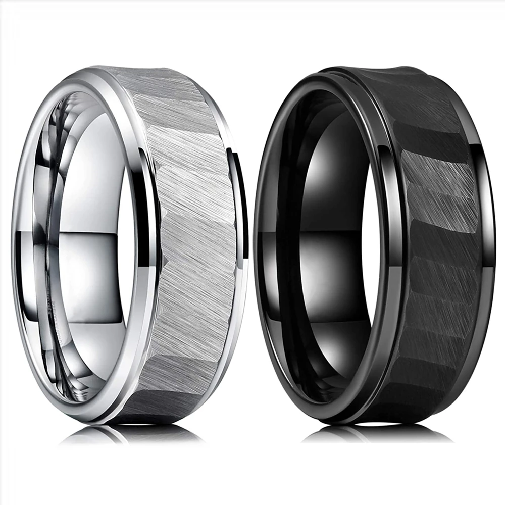 Классические кольца из титановой стали, 8 мм, с матовой поверхностью, центральный молоток, текстура 316L, кольца из нержавеющей стали, мужские свадебные браслеты, размер 6-13