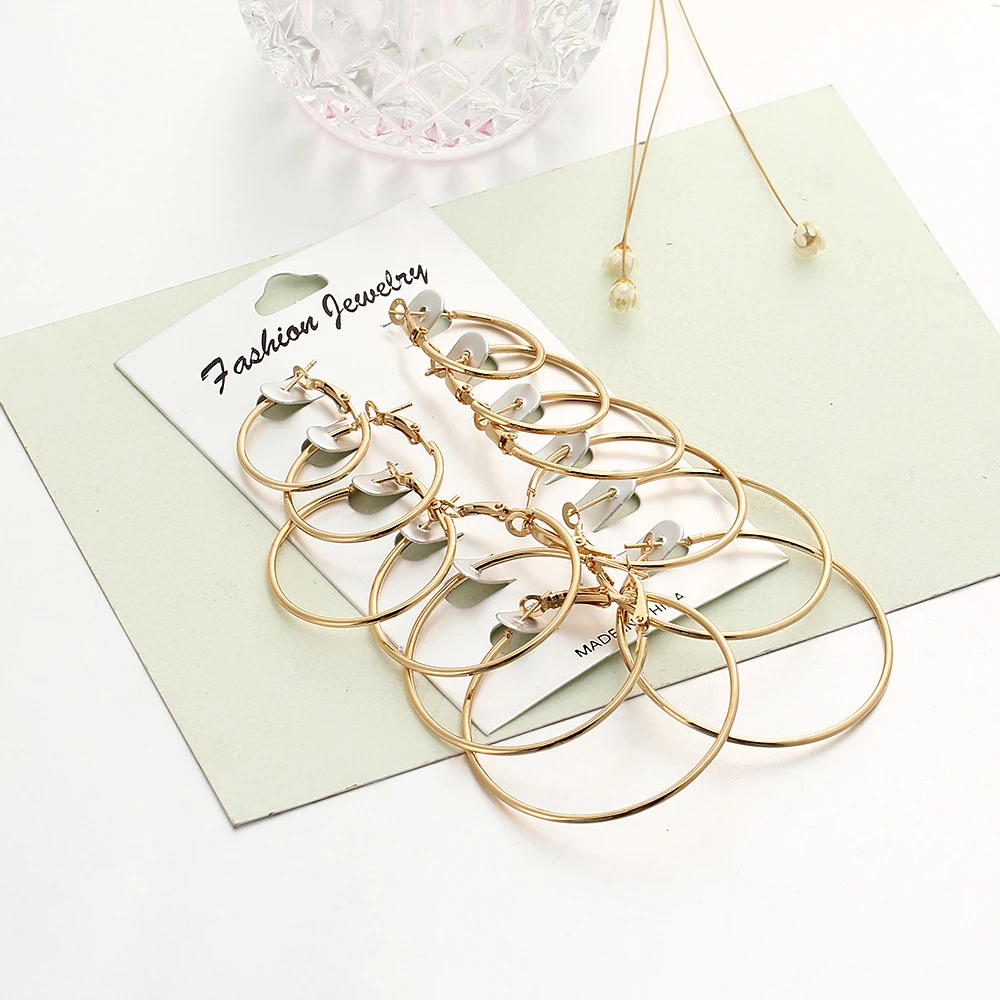 6 пар серьги-кольца в стиле панк набор большие круглые серьги ювели...