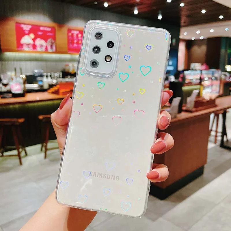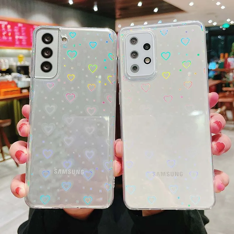 Чехол для телефона с градиентным лазерным рисунком в виде сердца для Samsung Galaxy A32 5G A52 A72 A51 S21 S20 Ultra S20FE Note 20 Ultra