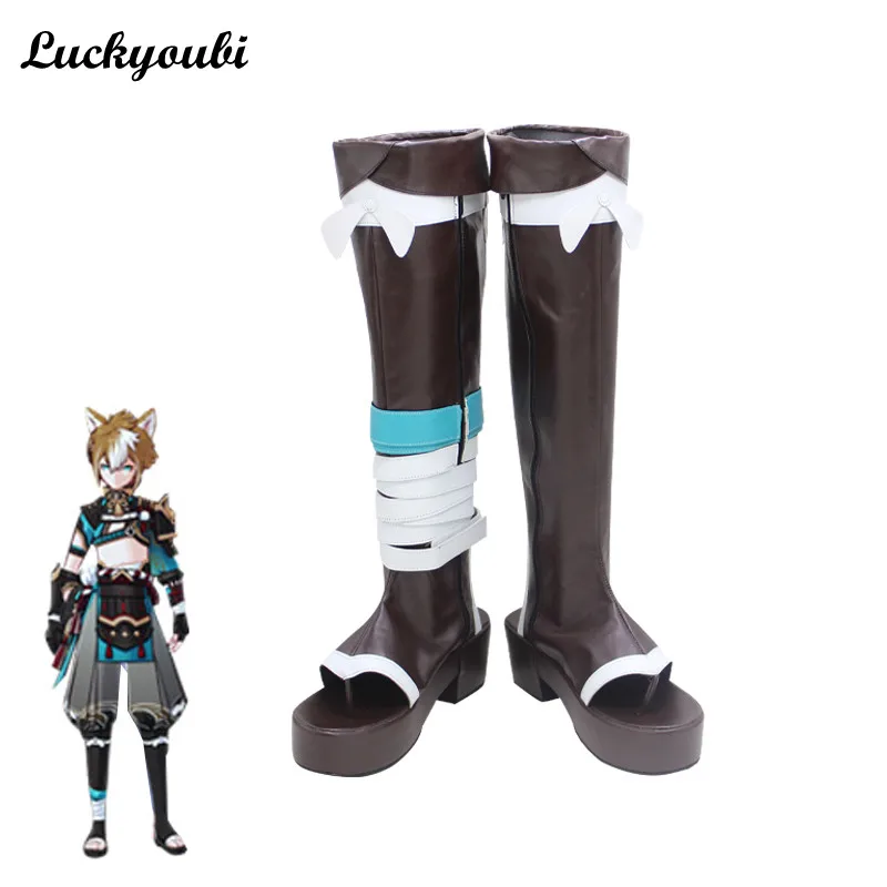 Обувь для косплея Game Genshin Impact Gorou, высокие ботинки для ко...