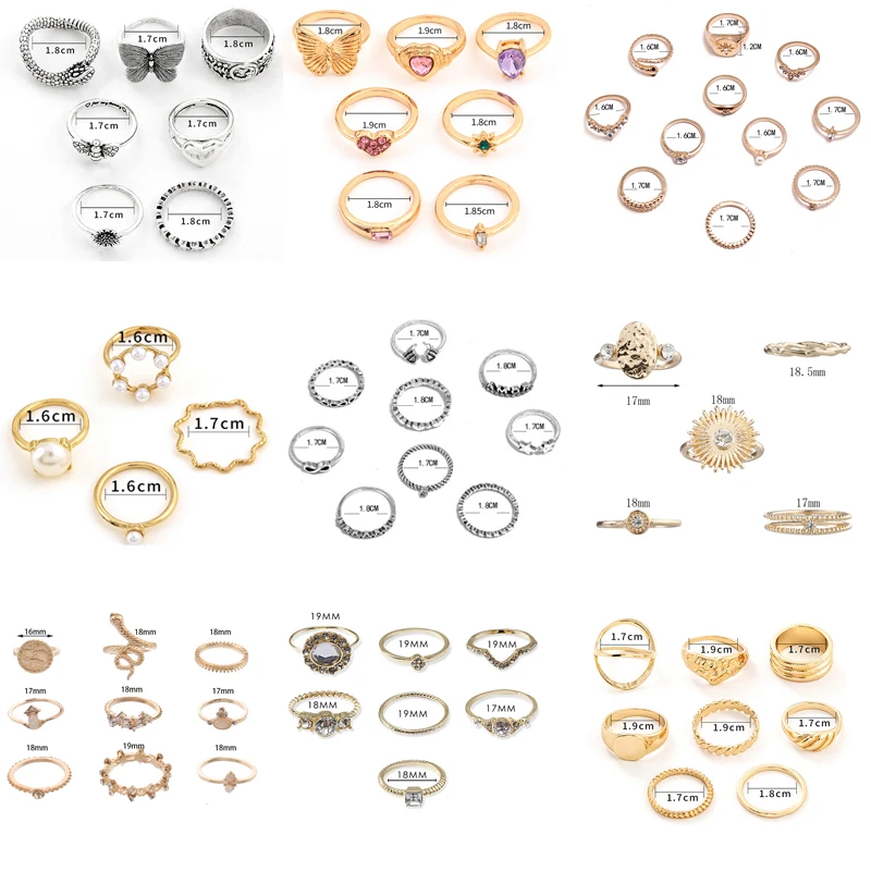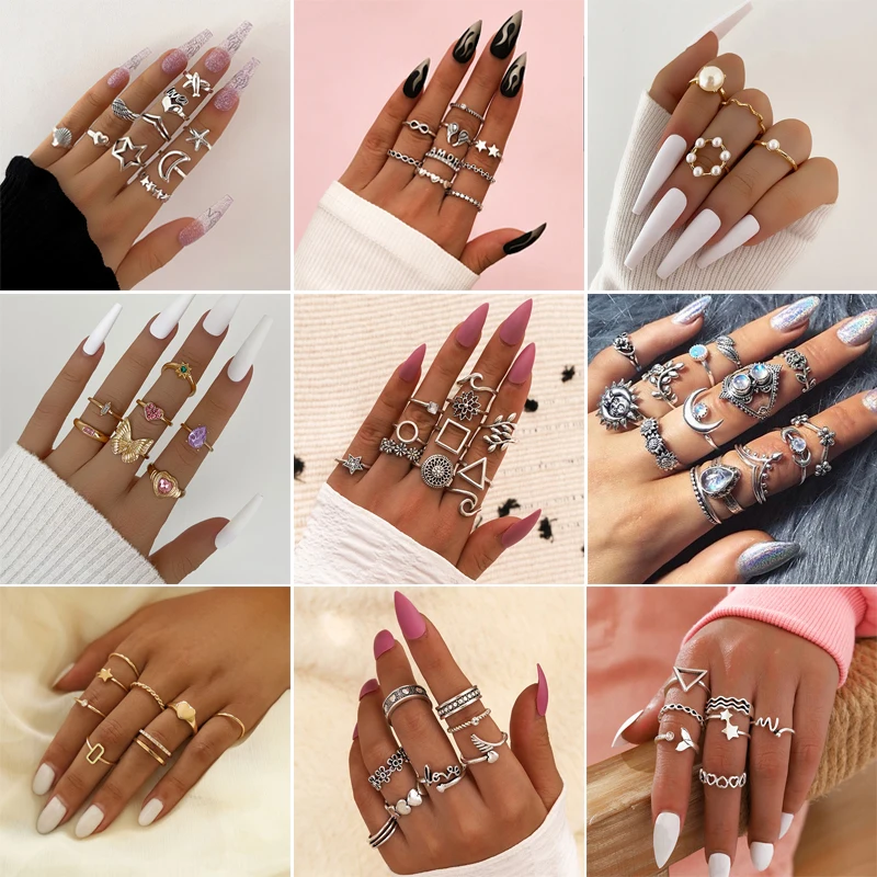 Женский комплект колец в богемном стиле, набор колец с геометрическим рисунком, кристаллами, звездой, луной, цветком, бабочкой, созвездиями, костяшками пальцев, модные ювелирные украшения