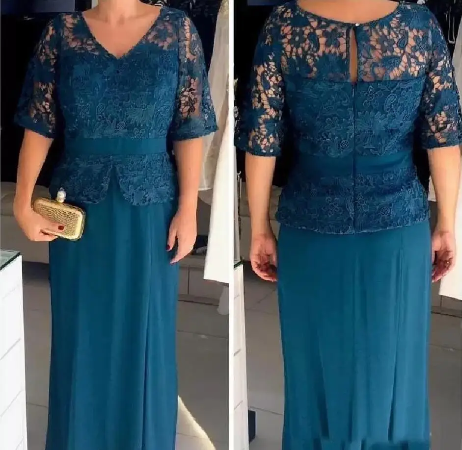 Женское платье для матери невесты, ТРАПЕЦИЕВИДНОЕ кружевное платье с V-образным вырезом, шифоновое вечернее платье без шлейфа, с длинным рукавом до локтя, для торжественных вечеринок
