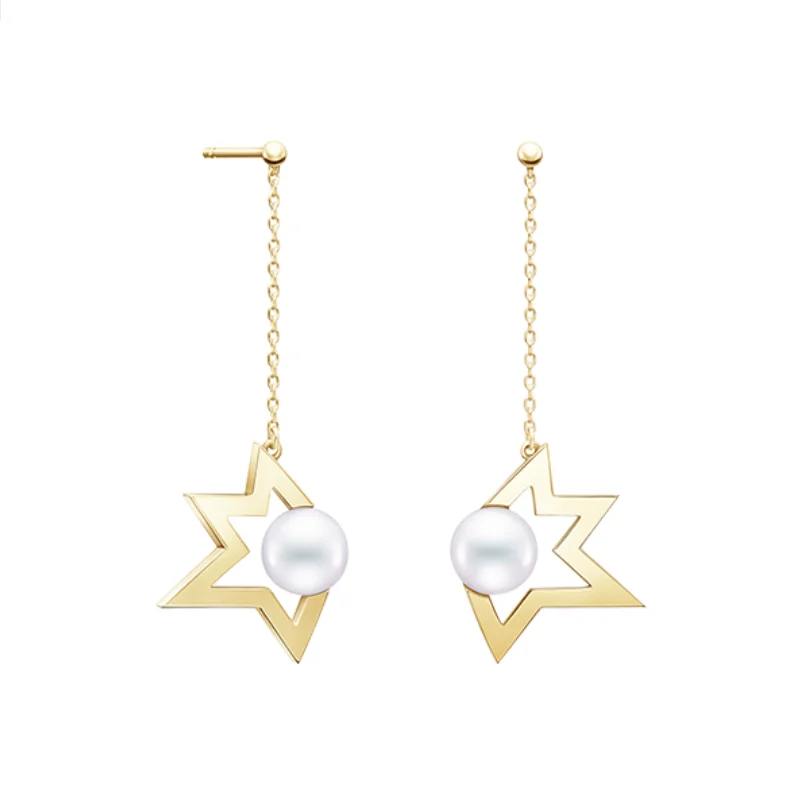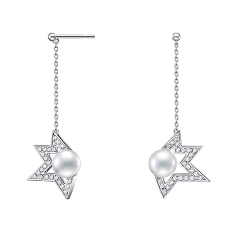 Серьги-гвоздики с жемчугом и звездой из розового золота с фианитом