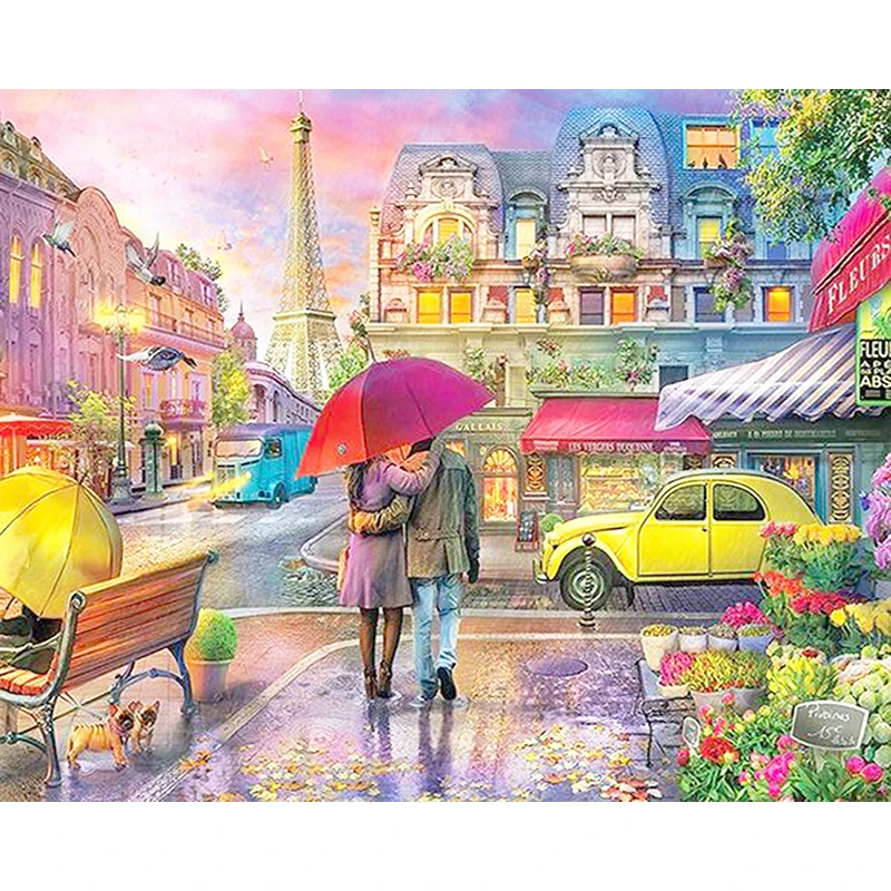Алмазная 5D картина RUOPOTY Улица Парижа, Набор для вышивки крестиком, мозаика, вышивка с пейзажем, картина для домашнего декора