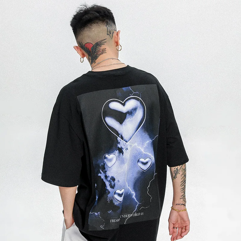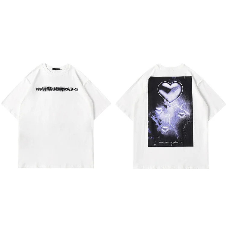 Футболка мужская с принтом молнии, хлопковая Свободная рубашка в стиле хип-хоп, с надписью, сердечком, в стиле Харадзюку, большие размеры, лето