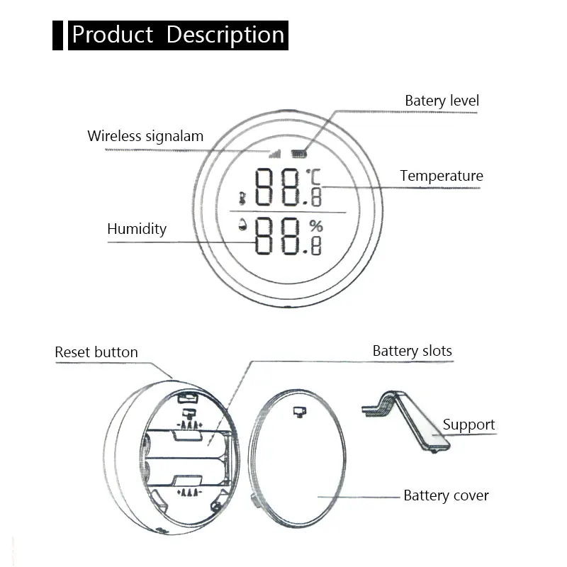 Датчик температуры и влажности может быть соединен с другими смарт-устройствами в доме для улучшения нагрева и охлаждения в помещении и сделать ваш дом более комфортным. Конструкция с низким преимуществом обеспечивает длительный срок службы батареи.