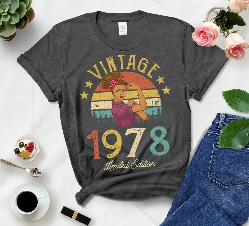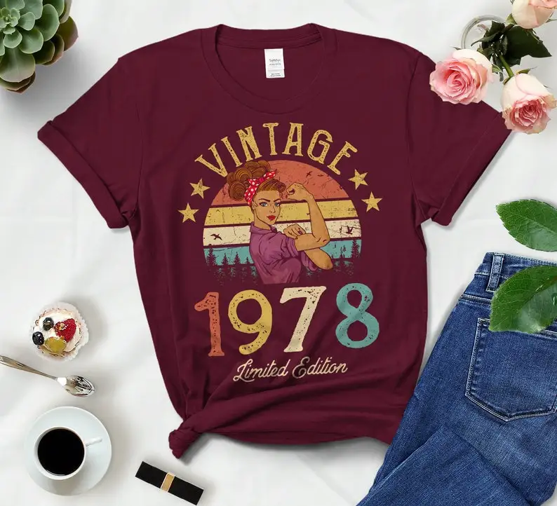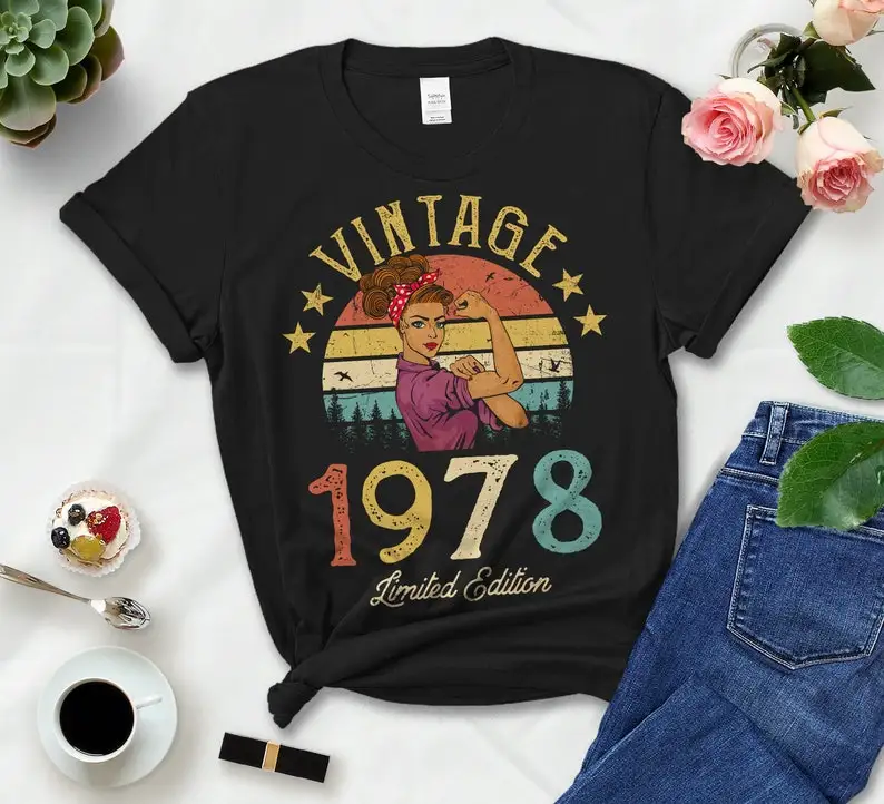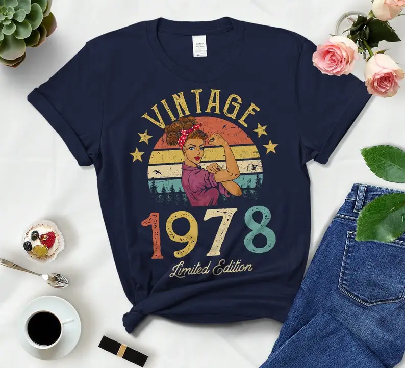 Винтажная классическая женская футболка, коллекция 1978 года, забавная ретро-футболка 43rd для подарка на день рождения, рубашка для внучек и дочери
