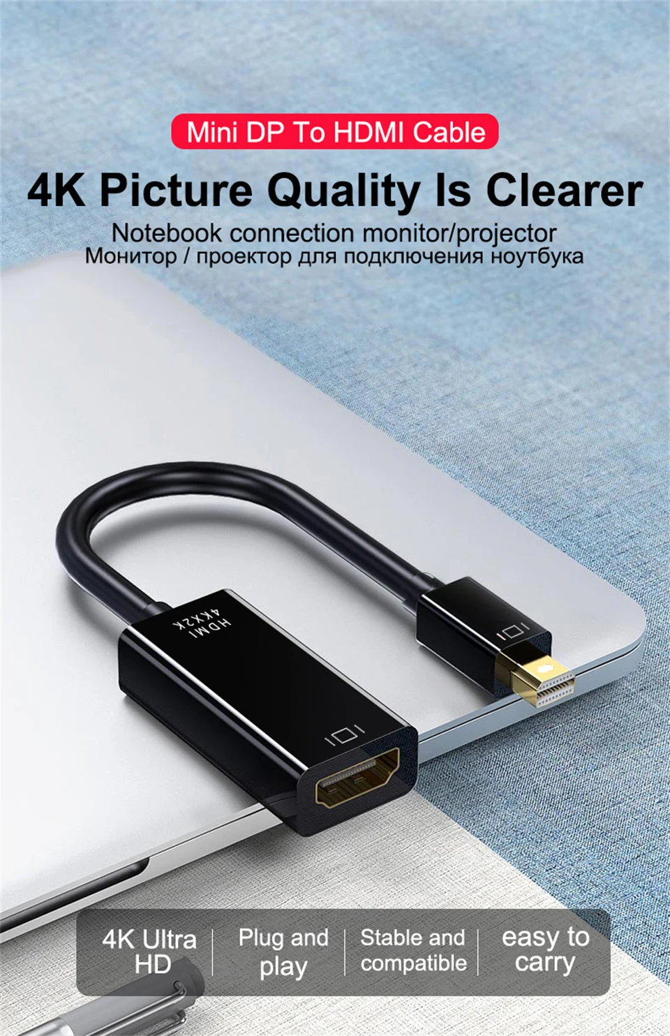 Конструкция внутренней цепи этого продукта может достигать только одного преобразования Mini DisplayPort в HDMIОписание:◆ Этот мини-кабель displayport поддерживает 4K x 2K или 1080P◆ Поддержка Mini DisplayPort v1.2;◆ Поддержка сигнала Mini DisplayPort к конвертации, совместимой с HDMI;Поддержка 20pin Mini DisplayPort интерфейса;◆ Поддержка Mini DisplayPort1.1a/1,2 вход и HDMI-совместимый выход 1.3b / 1.4.2.0 и совместим с входом интерфейса Thunderbolt.◆ Поддержка HDMI-совместима с частотой часов 225 МГц, пропускной способностью 2,25 Гбит/с на канал передачи данных (все каналы 6,75 Гбит/с пропускной способностью данных)◆ Поддержка HDMI-совместимый 4K x 2k (3840 2160) ультра-высокой четкости выход◆ Поддержка HMDI 12 бит глубокий цвет (все каналы 36 бит глубокий цвет)◆ Поддержка до 10,8 Гбит/с, ширина полосы видеочастот;◆ Поддержка двустороннего вспомогательного канала 1 Мбит/с;◆ Поддержка одностороннего, одноканального, четырехпроводного подключения;◆ Поддержка горячей замены.◆ Встроенный чип преобразования, нет внешнего источника питания◆ В строгом соответствии со стандартным дизайном Mini DisplayPort, подходит для спецификации Apple Mini DisplayPort, стабильность передачи сигнала◆ К HDMI-совместимая часть аудио и видео для поддержки синхронной передачиПрименимые модели:◆ MacBook / MacBook Pro / MacBook Air / Apple iMac 21,5/27 дюймов, Lenovo X1, Dell XPS, а также оснащен мини-дисплеем интерфейс, другие бренды ноутбуков или видеокарт с hdmi-совместимым разъемом HDTV, монитором, проектором, ЖК-дисплеем, подключенным светодиодным дисплеем!