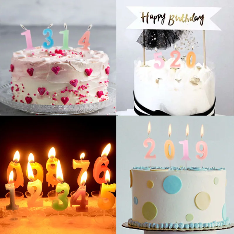 Свечи на день рождения 1, 2, 3, 4, 5, 6, 7, 8, 9, 0, милые радужные цветные детские свечи на день рождения для торвечерние, праздничные украшения, свечи для торта