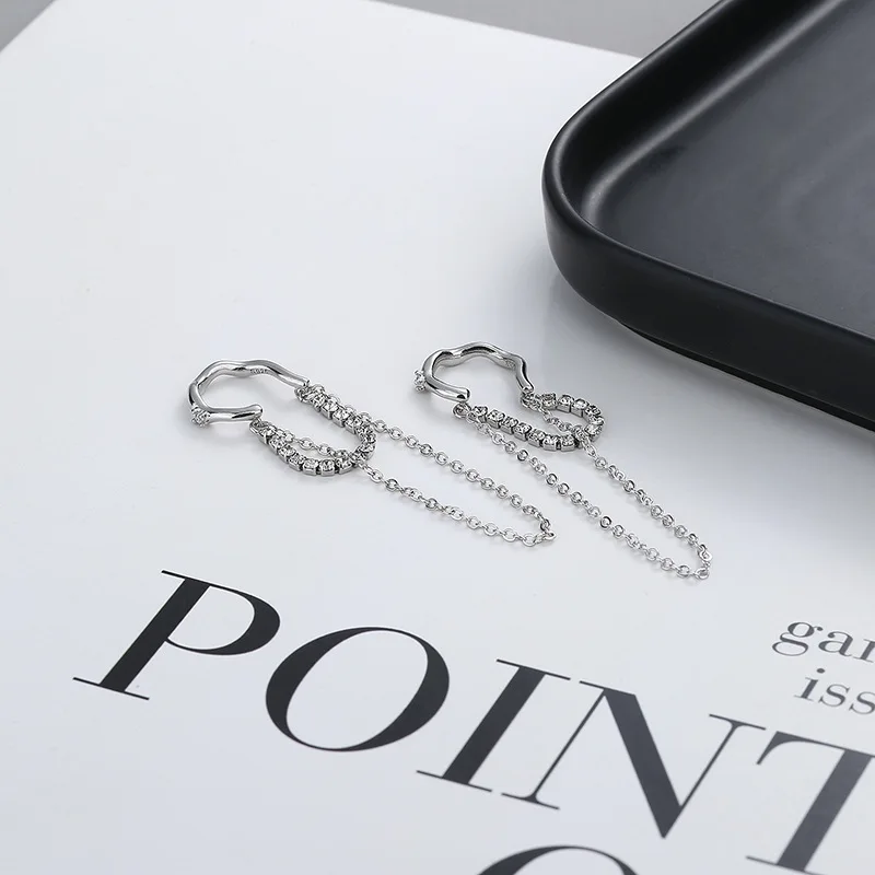 Клипса для правого уха с цирконом CIAXY 925, серьги-кисточки с цепочкой для женщин, серебряный цвет, хип-хоп, рок, ювелирные изделия