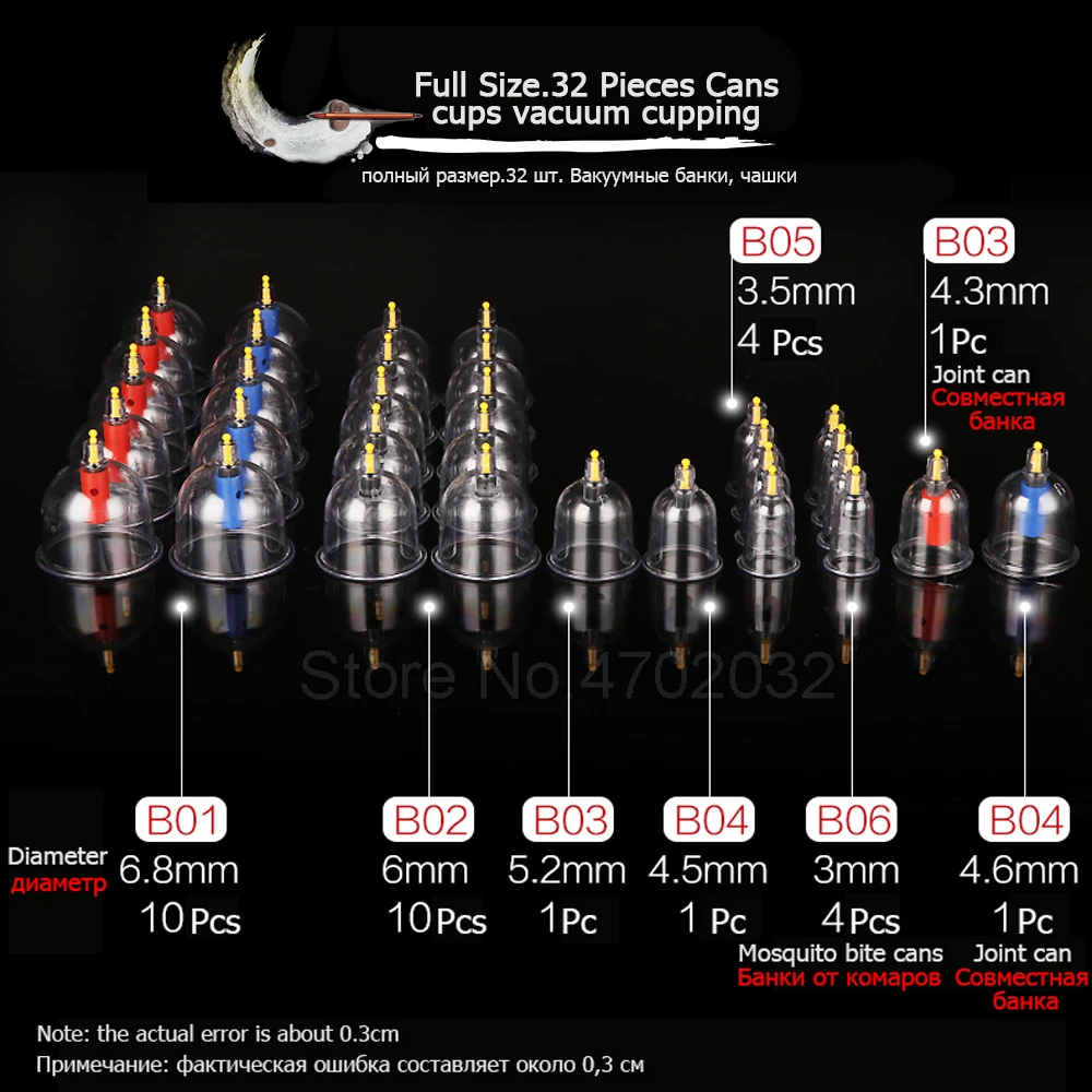 Набор для вакуумной терапии, комплект из 32 банок, Hijama Glass, китайская медицина, присоски для акупунктуры, целлюлита, массажер для тела