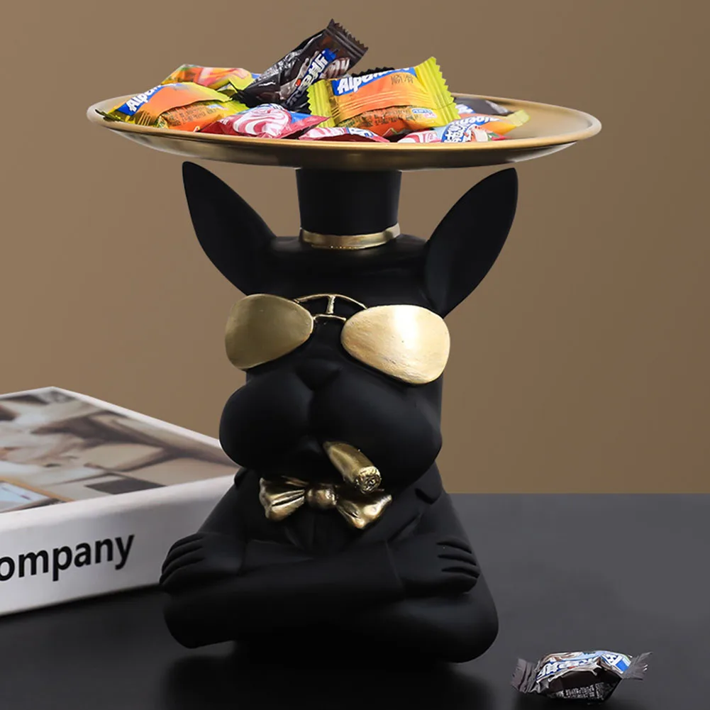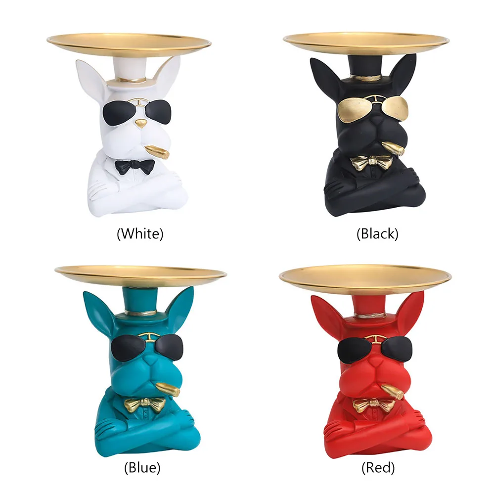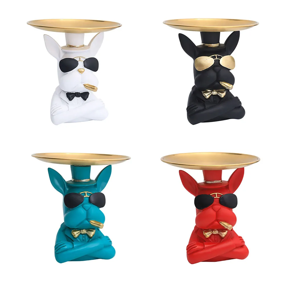 Статуя крутой собаки, скульптура бульдога из смолы, настольное хранилище, поднос для снэков, тарелка для конфет, декоративное искусство, домашний декор