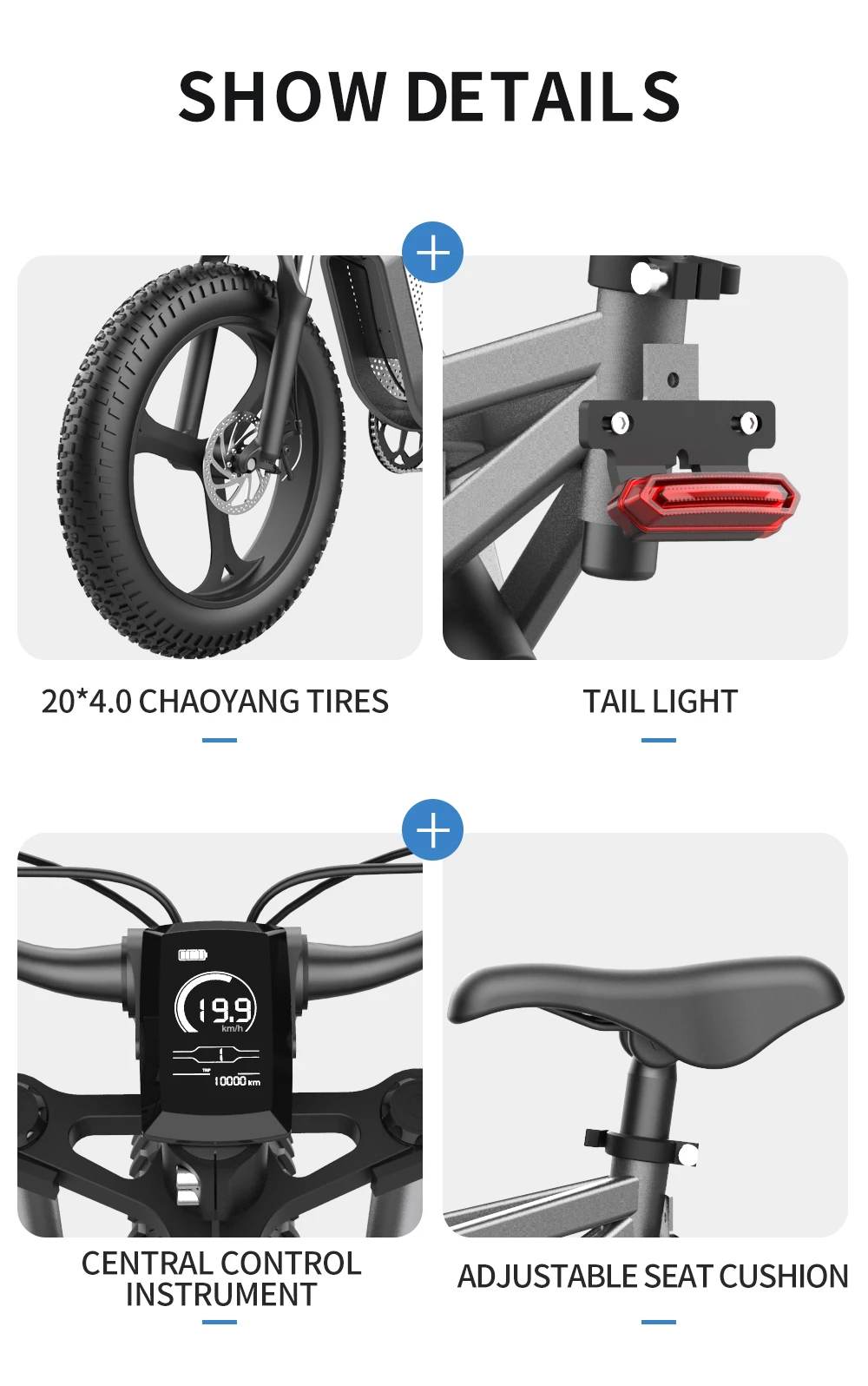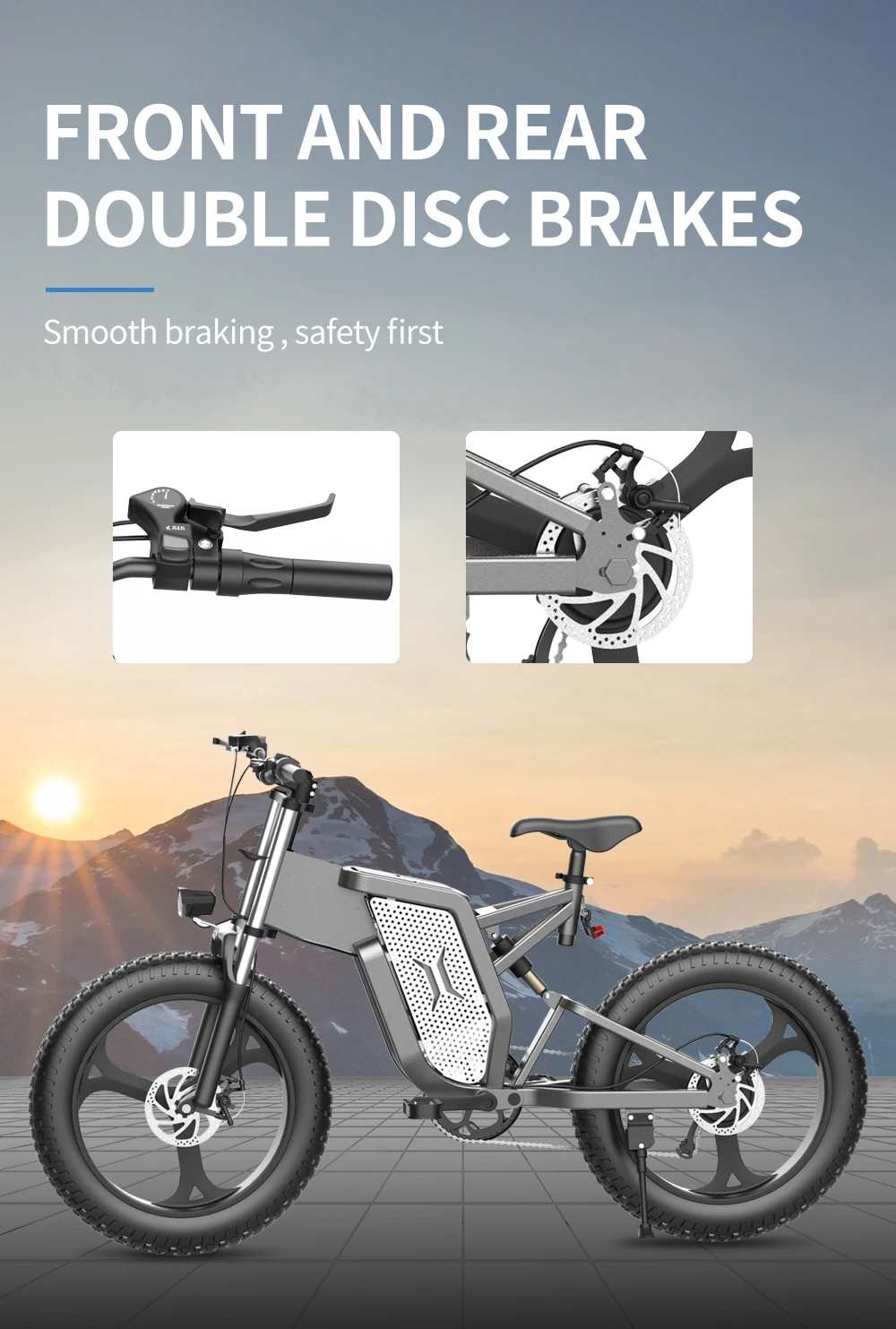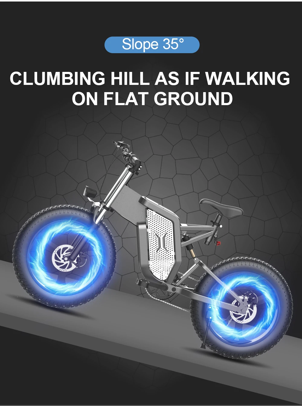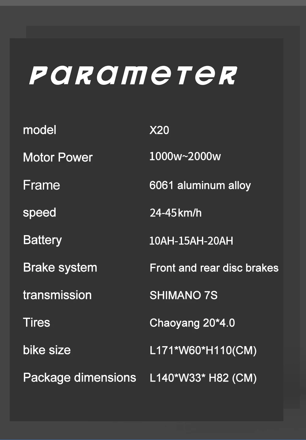 Электрический велосипед X20, мощный горный электровелосипед с толстыми шинами 20 дюймов, 2000 Вт, 48 В, 20 Ач, для взрослых