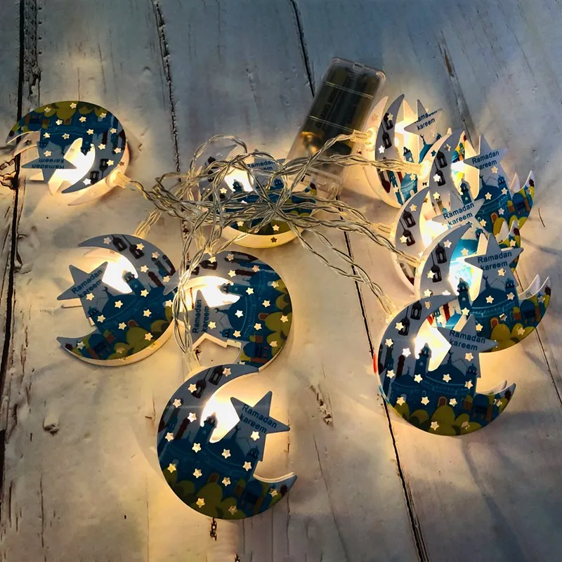 ИД Мубарак Луна Звезда СВЕТОДИОДНАЯ Гирлянда Декор для Исламской Му...