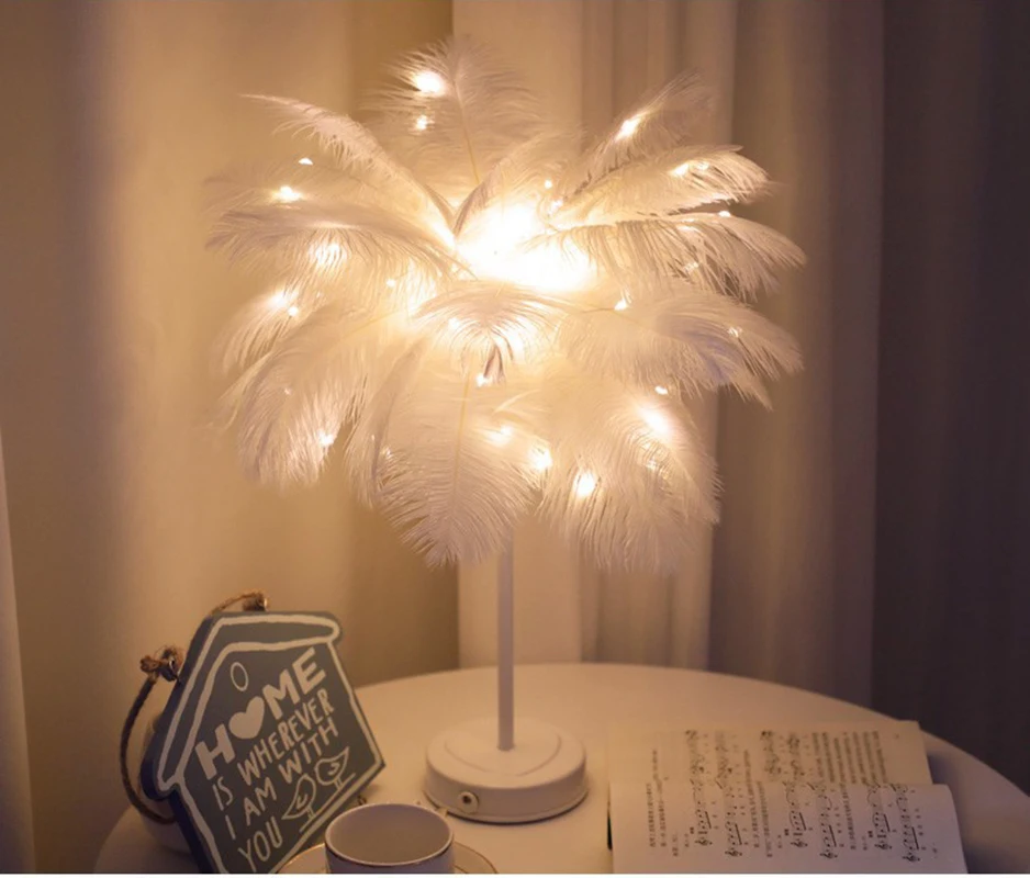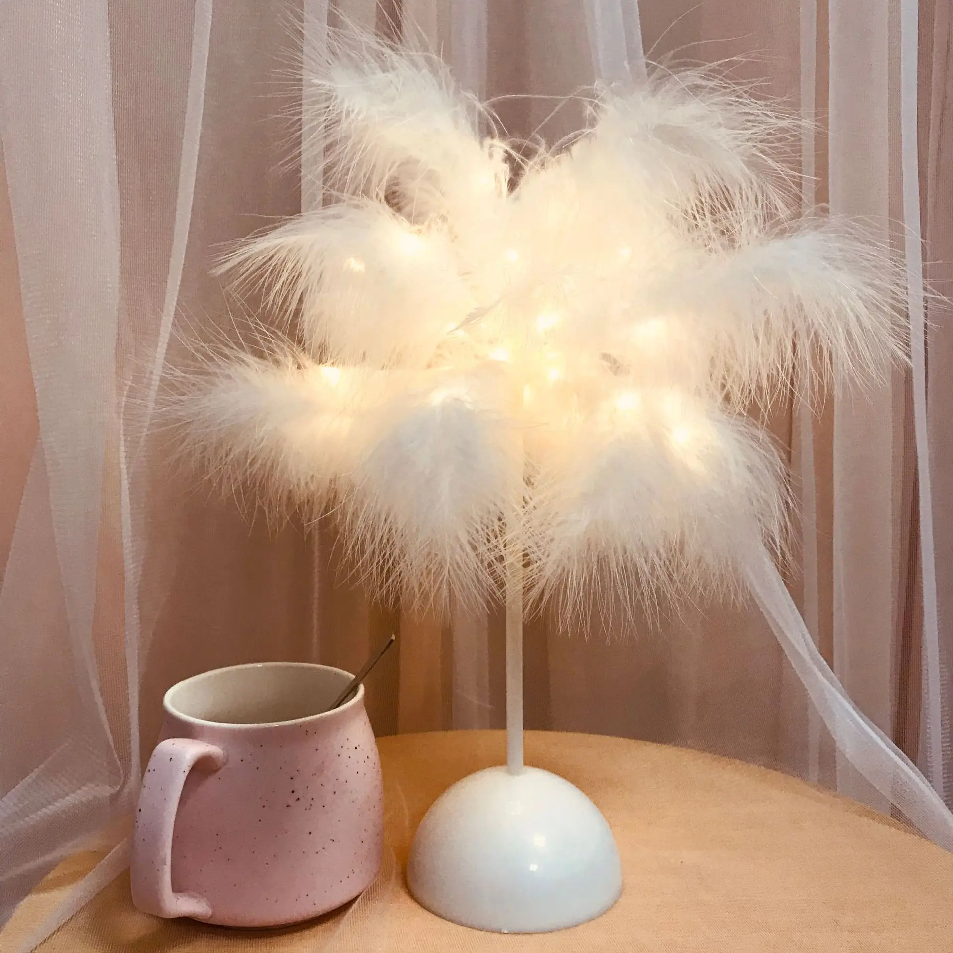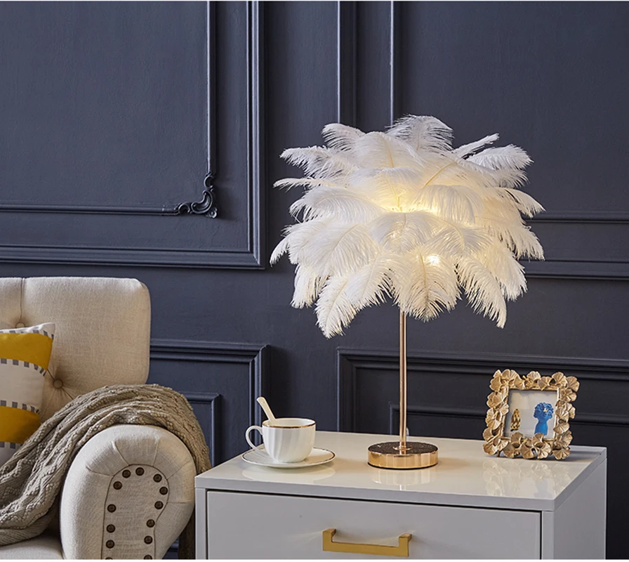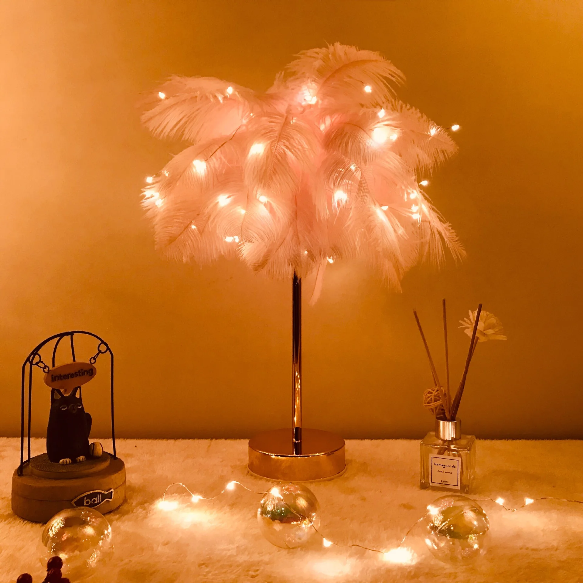 Fashion модная Настольная лампа с перьямиОн изготовлен из натуральные перья страуса, делая все оттенки стихийных бедствий и уникально. Модернизированное металлическое основание, высококачественные материалы и отделка из латуни не только улучшают гладкость современного ощущения, но и обеспечивают долгосрочное использование.➢ ПитаниеТребуется 3 батарейки типа АА (не входят в комплект поставки) или источник питания USB, переключатель включения/выключения на задней панели. С пультом дистанционного управления доступны 3 режима.➢ Легко ПрименениеНет статического электричества и специальной конструкции пера. Нет пыли и не выцветает, перьевая лампа практична и красива. Сделайте вашу комнату более дизайнерской. Тонкая медная проволока может быть свободно согнута, легка в форме и может соответствовать форме, которую вы хотите.➢ Широкий спектр примененияОн очень подходит для спальни, детской комнаты, комнаты принцессы, гостиной, кофейни, свадьбы, дня рождения, прикроватного стола, туалетного столика или журнального столика, стола, украшения стола.