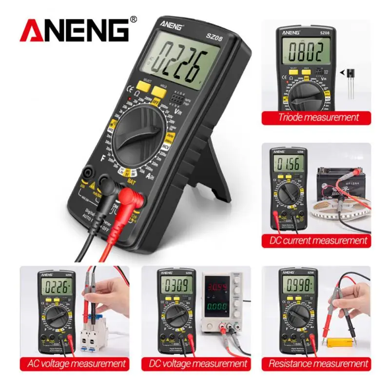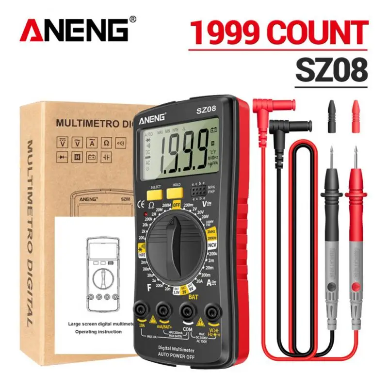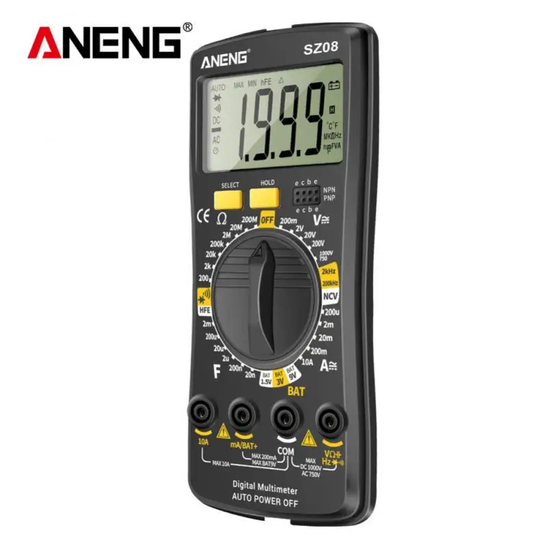 ANENG SZ08 Цифровой мультиметр Smart NCV Портативный ЖК-дисплей 1999 отсчетов диодный автоматический Вольтметр AC DC 220 В тесты ers с испытательным выводом