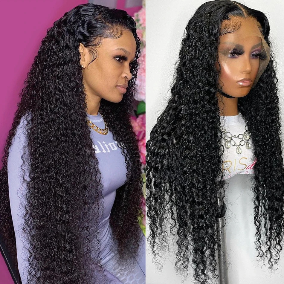 30 дюймов, волнистые, кружевные, передние парики, вьющиеся человеческие волосы 13x4 HD, глубокая волна, фронтальные парики для черных женщин, бразильские натуральные человеческие волосы
