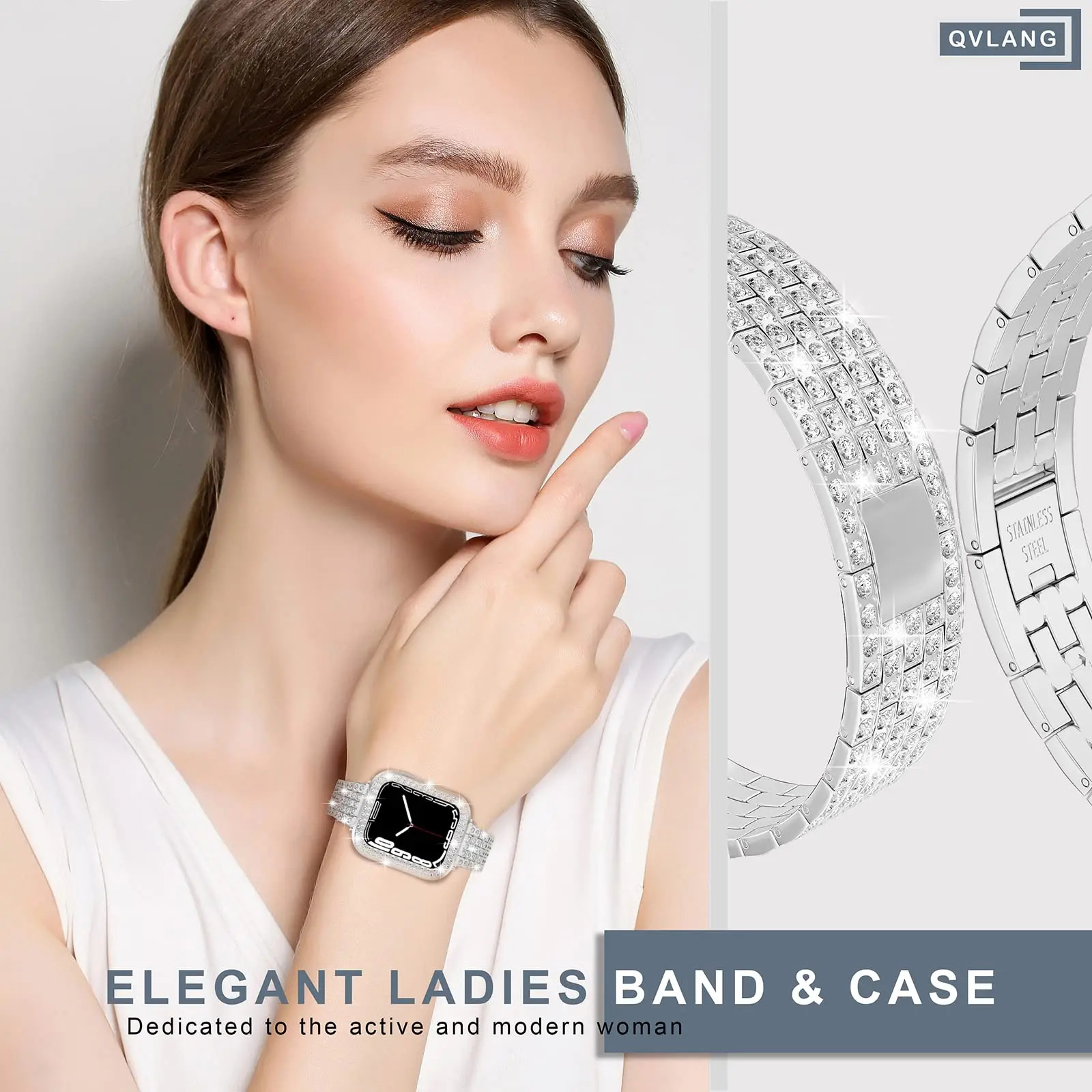 Совместимые модели: специально разработанные для Apple Watch серии 7,6, 5, 4,SE. Пожалуйста, не забудьте проверить обратную сторону ваших часов и убедитесь, что вы заказываете правильный размер. Подходит для 5,1 "-9,2" (130 - 235 мм) запястье.Яркий дизайн и переливчатый Серия: набор с блестящие стразы; Подарите вашему apple watch новым взглядом и делает ее более женственной. Легко получить комплименты по бизнесу, свиданиям, вечерние и любым другим случаям.Премиум Материал: Этот шкатулка для украшений набор с сверкающие стразы выполнен из нержавеющей стали, которая является безопасным при контакте с кожей и комфортно. И в сочетании с украшениями часы Чехол изготовлены из высококачественного поликарбоната, отсутствие деформации и обесцвечиванию, также в комплекте с сверкающие стразы.Простая настройка: это ювелирные изделия браслет поставляется с средство для изменения размера для снятия как можно больше ссылки, как вам нравится в соответствии с вашего запястья.Что вы получаете: 1 x Bing apple watch band.