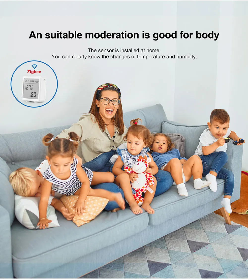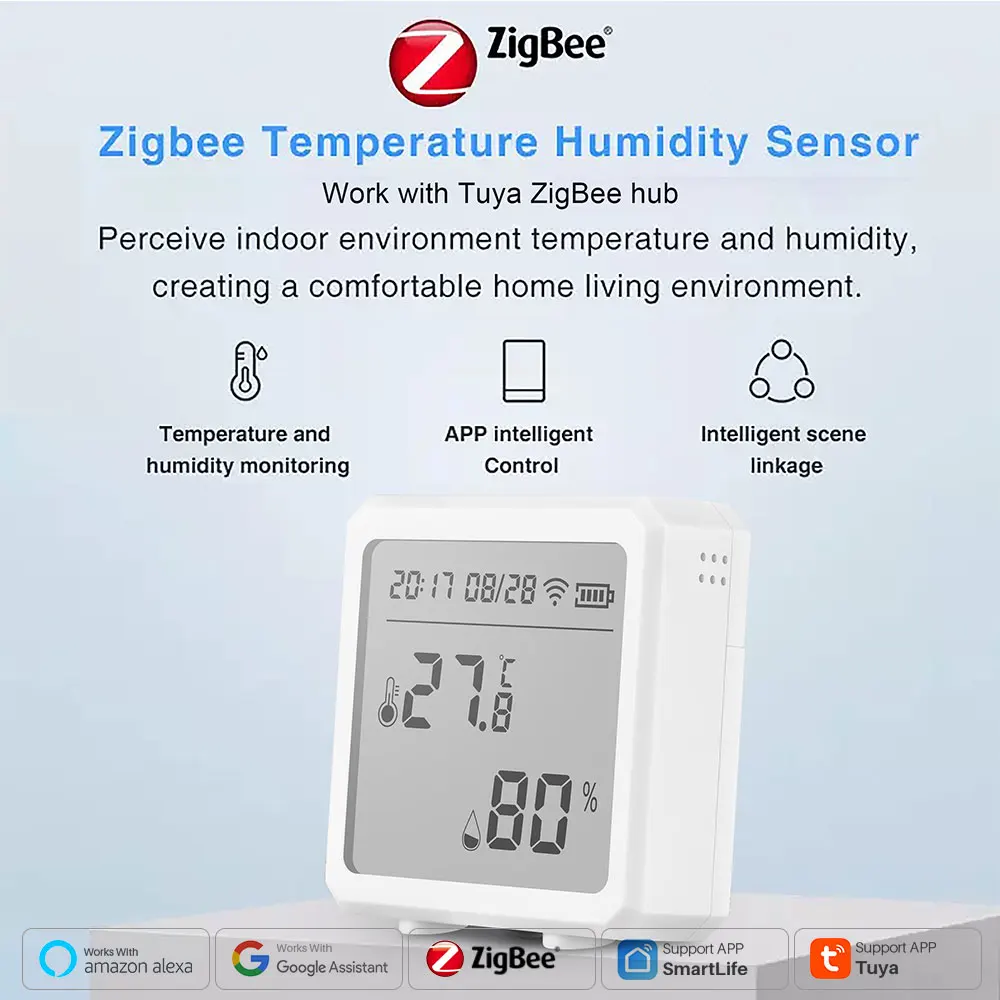 Датчик влажности и температуры Tuya Zigbee, комнатный гигрометр для умного дома, термометр, работает с Alexa Google Assistant