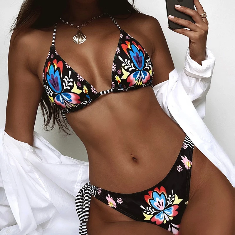 Соблазнительный комплект микро-бикини, новинка 2022, купальник на завязках с низкой талией, женский купальник, бикини с принтом, пляжная одежда