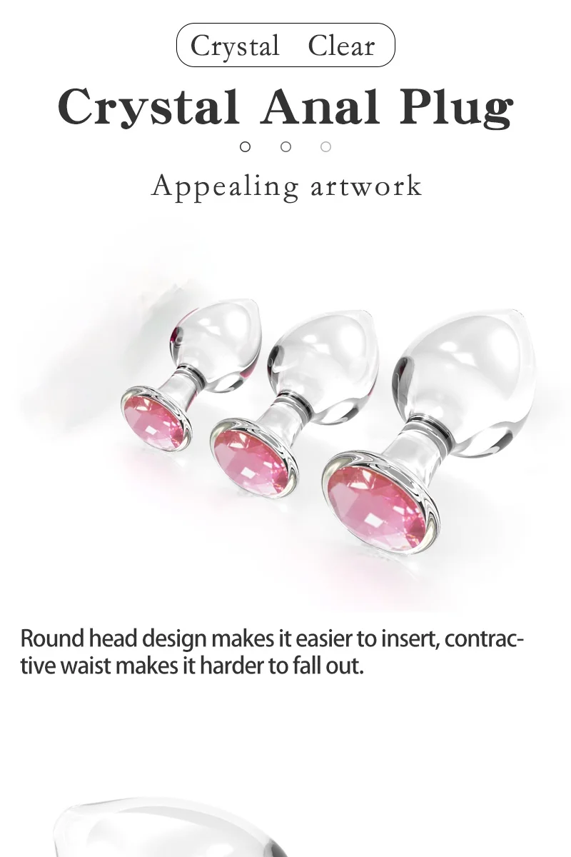 Прозрачная Анальная пробка из хрустального стекла, розовая Алмазная...
