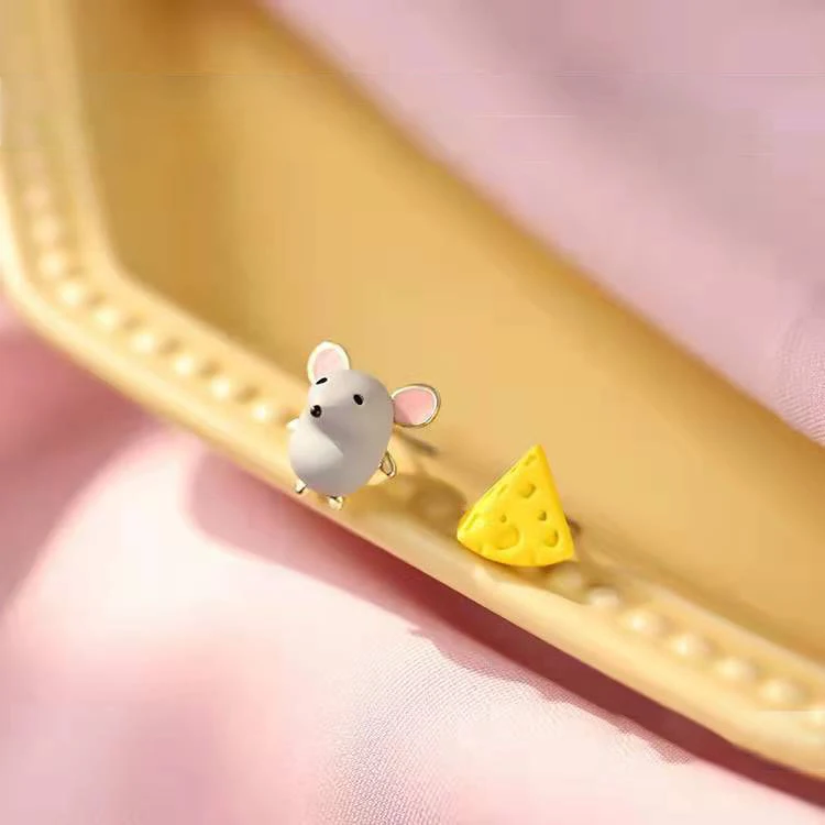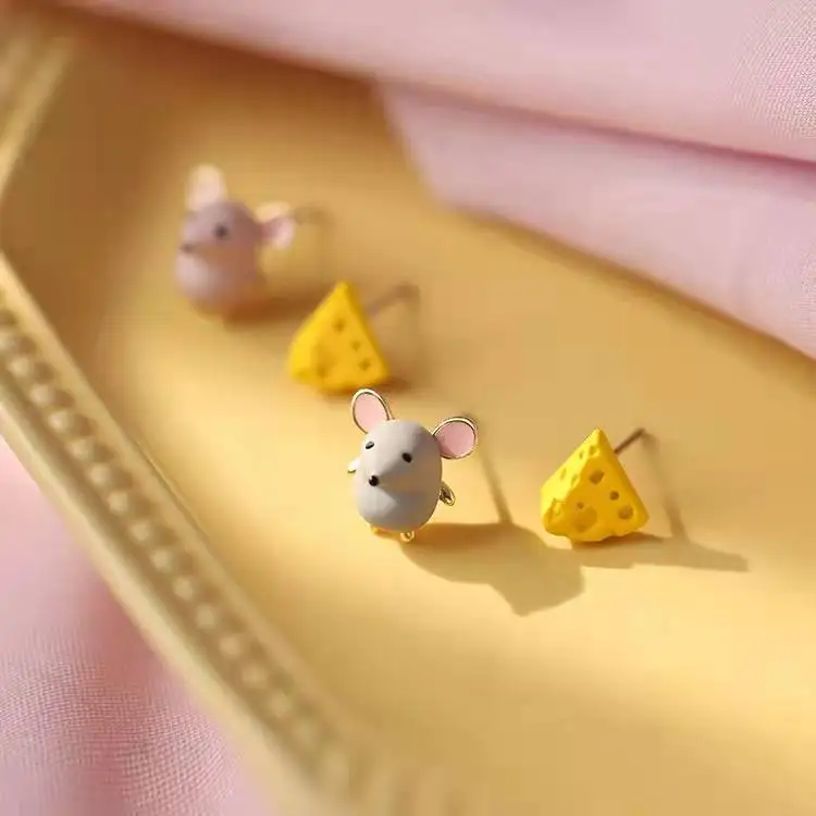Детские креативные серые кубики мыши и сыра, милые серьги-гвоздики для девочек, подарки дружбы, ювелирные изделия, аксессуары