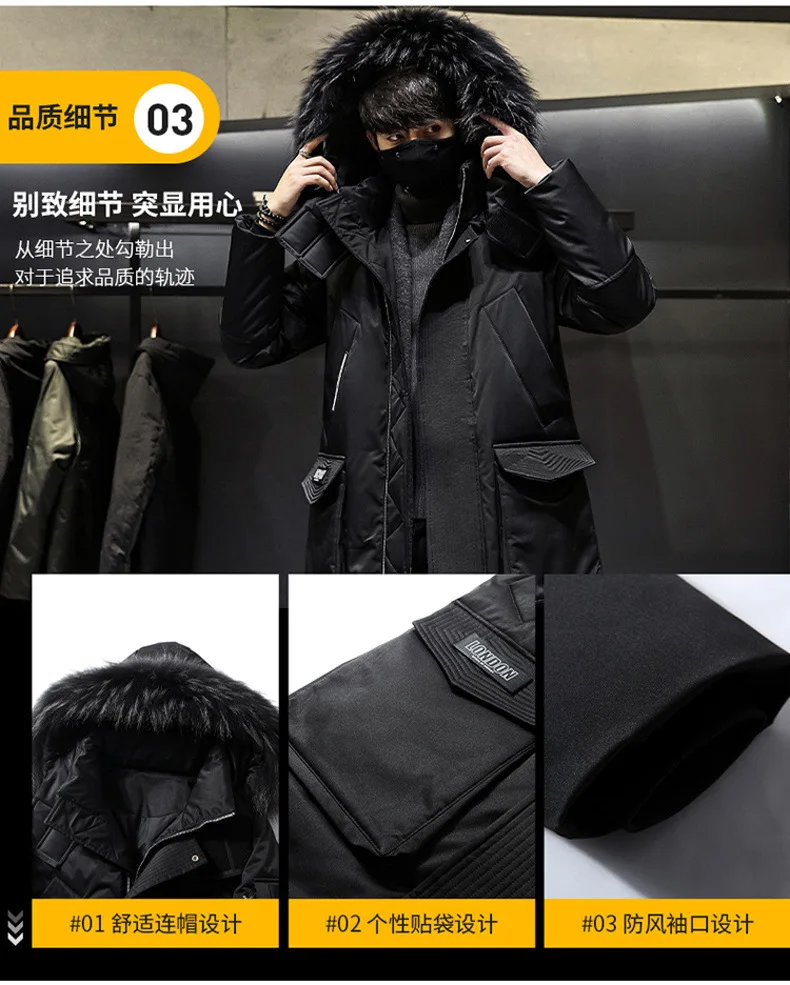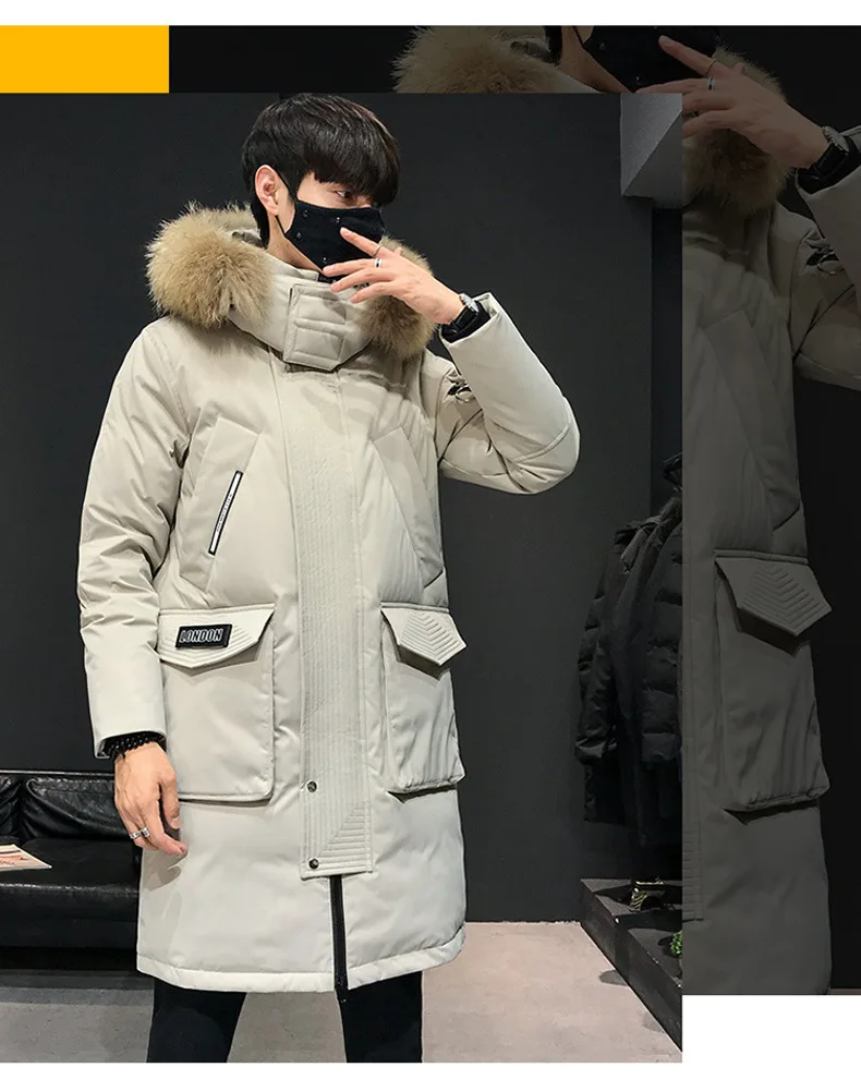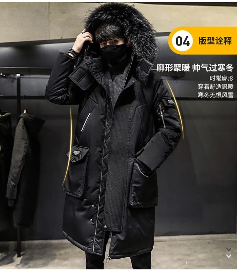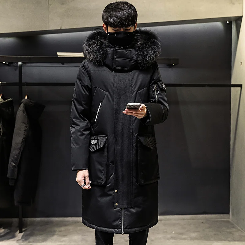 2022 модное пальто, утепленная куртка, Мужская удлиненная теплая парка с капюшоном, пальто на белом утином пуху, высококачественное мужское новое зимнее пуховое пальто