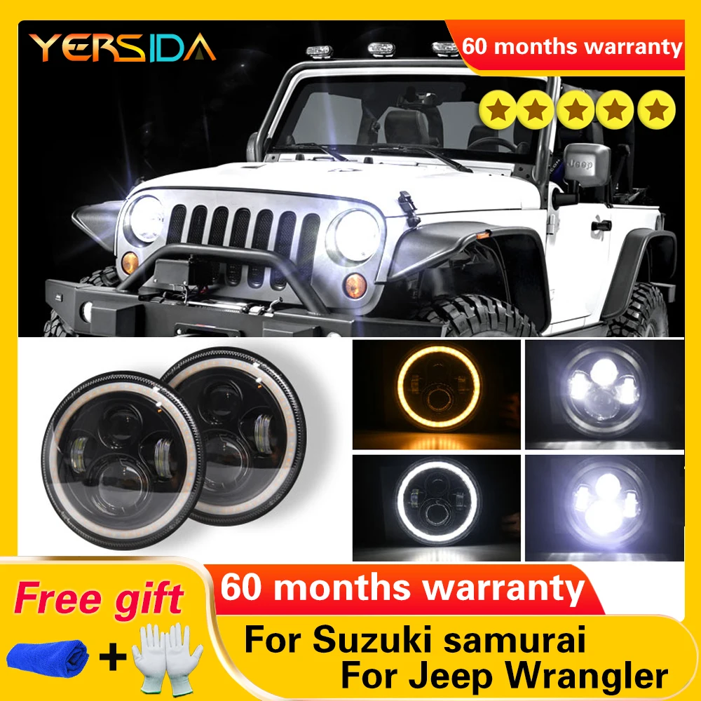 7-дюймовые СВЕТОДИОДНЫЕ Фары H4 H13 150 Вт дальний и ближний свет светодиодсветодиодный фары ангельские глазки DRL Янтарный сигнал поворота для Jeep Wrangler JK TJ Land Rover Harley