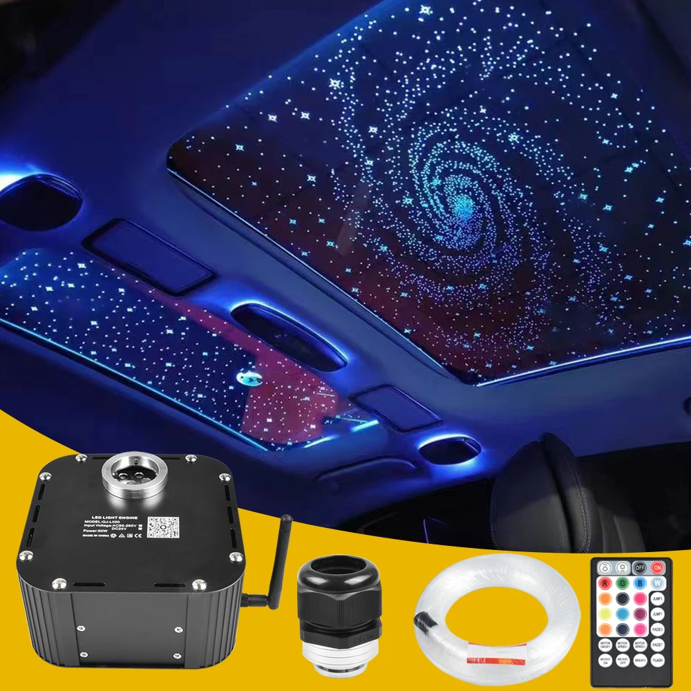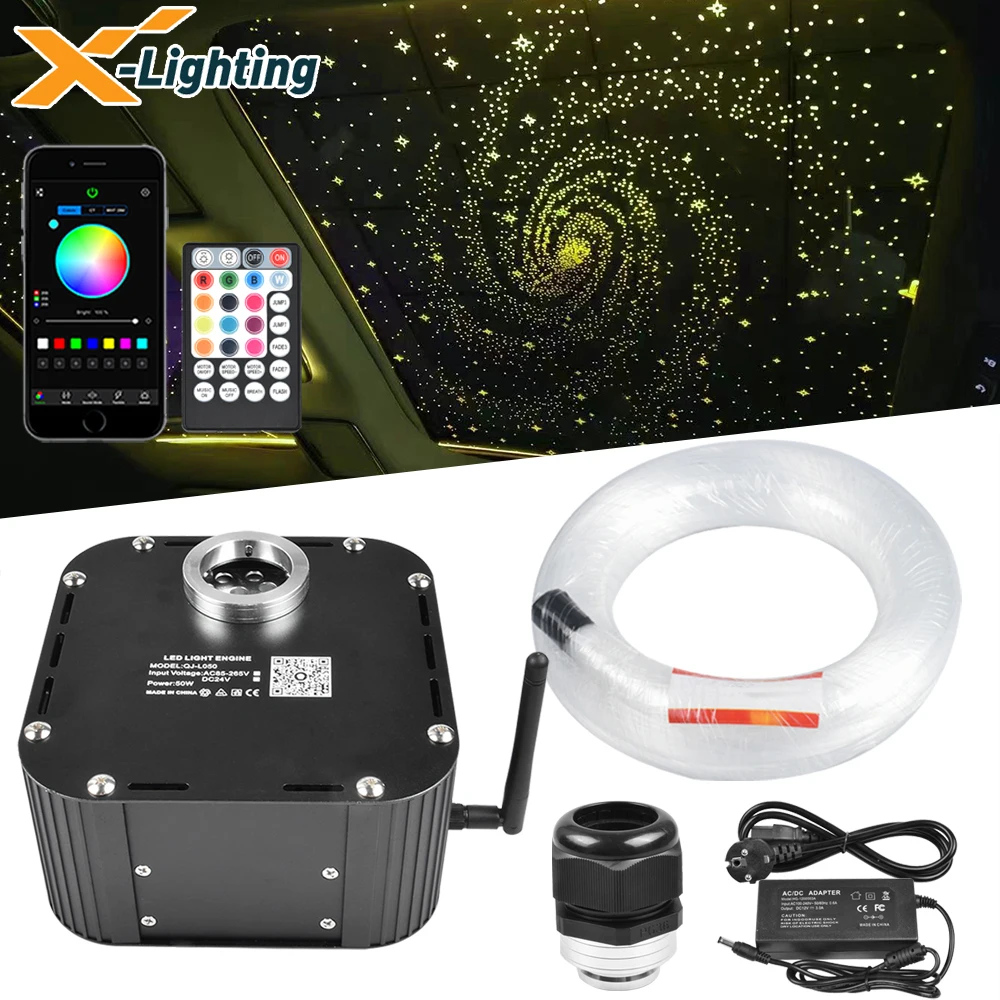 Светодиодный светильник с мерцающим колесом, лампа с двигателем и оптоволоконным кабелем для украшения потолка в стиле звездного неба, управление через приложение RGBW, 50 Вт