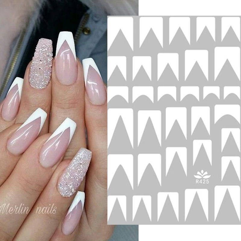 1 шт., черно-белая наклейка для ногтей во французском стиле