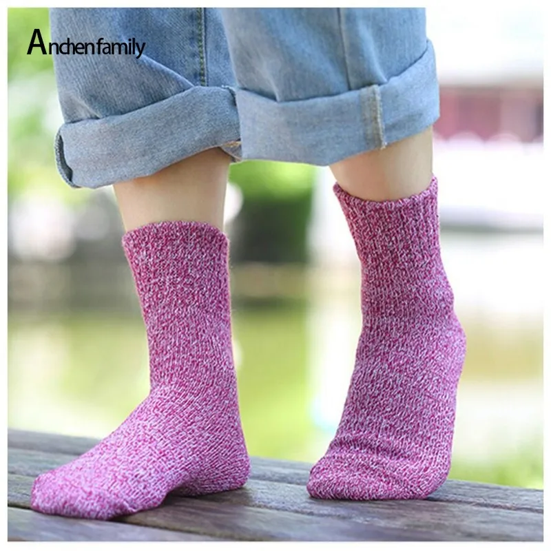 Классические простые зимние шерстяные плотные теплые дышащие эластичные модные повседневные женские носки однотонные женские носки
