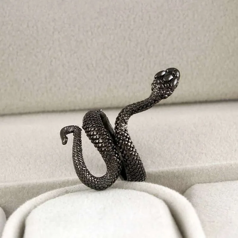 Кольцо в виде змеи Ретро панк Темные души увеличенные черные парные...
