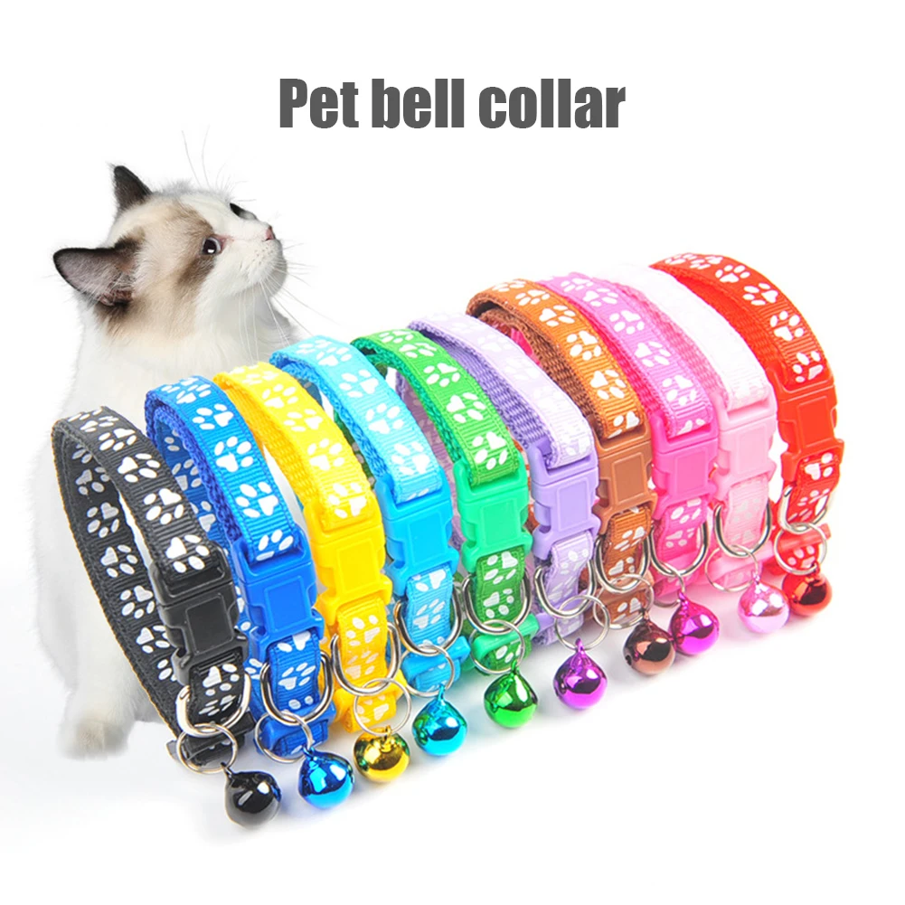 Ошейник для кошек и собак с колокольчиком, мультяшный Забавный отпечаток, щенок, котята, пряжка, шейный ремешок, Пластиковые регулируемые ошейники для домашних животных, аксессуары