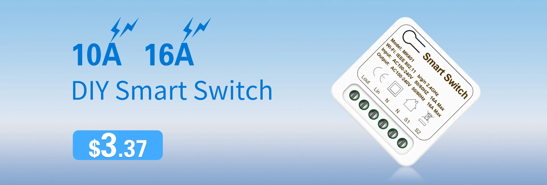 Мини-модуль Wi-Fi AUBESS 16 А с поддержкой Alexa и Google Home