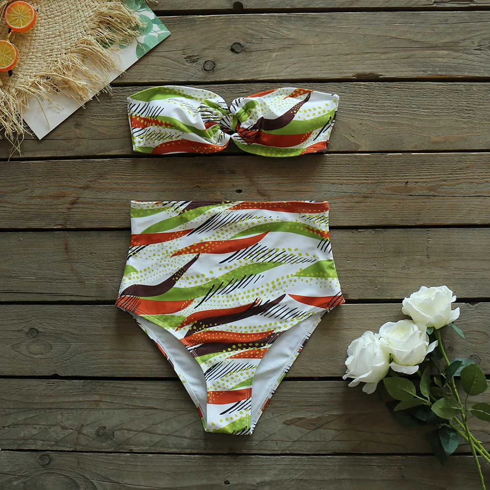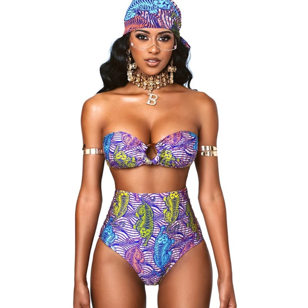 Сексуальный купальный костюм с принтом, бикини с высокой талией, же...