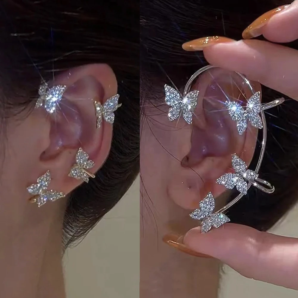 Блестящие циркониевые манжеты для ушей в виде бабочки, зажим для уш...