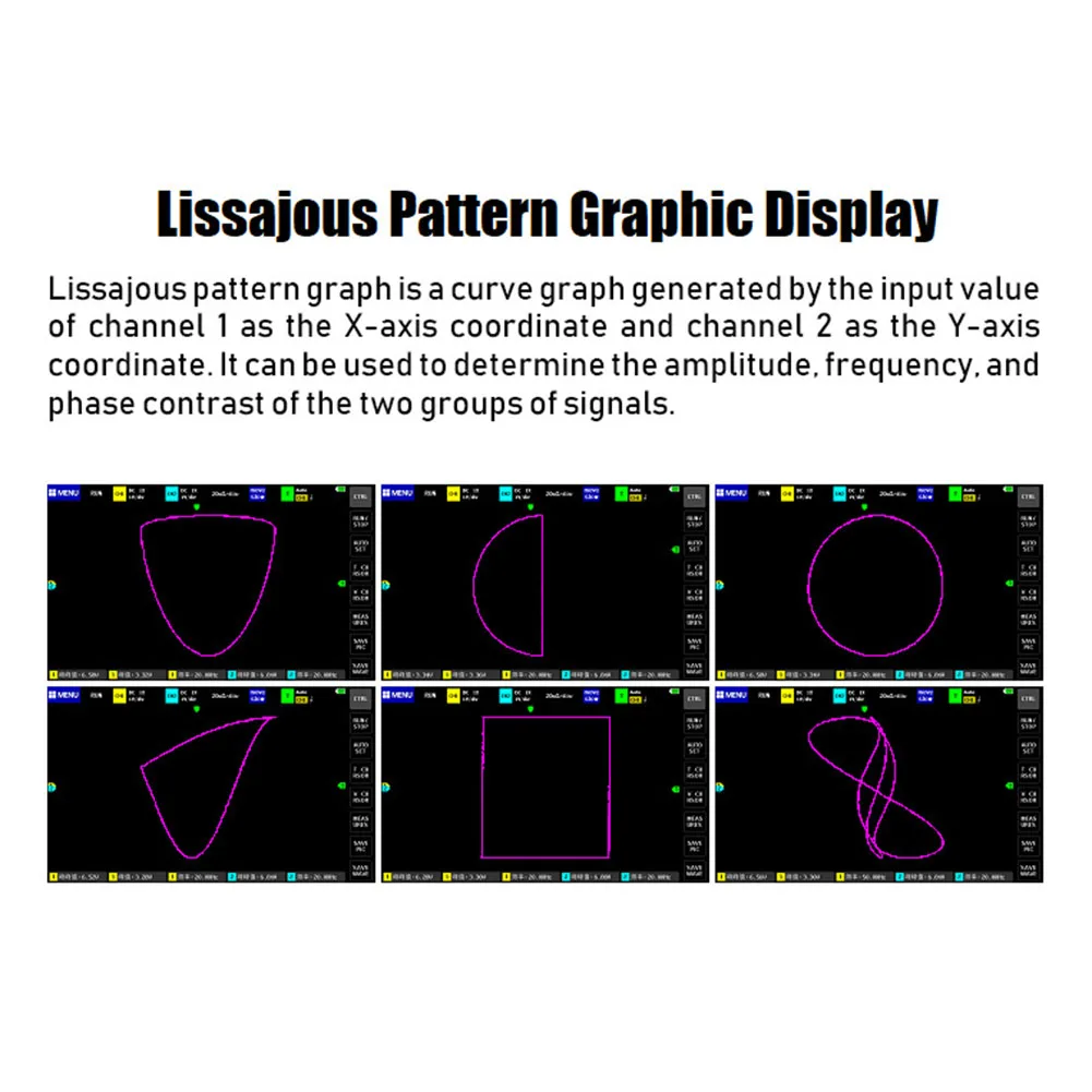 Функция графического дисплея Lissajous может использоваться для определения амплитуды, частоты и фазового контраста двух групп сигналов.