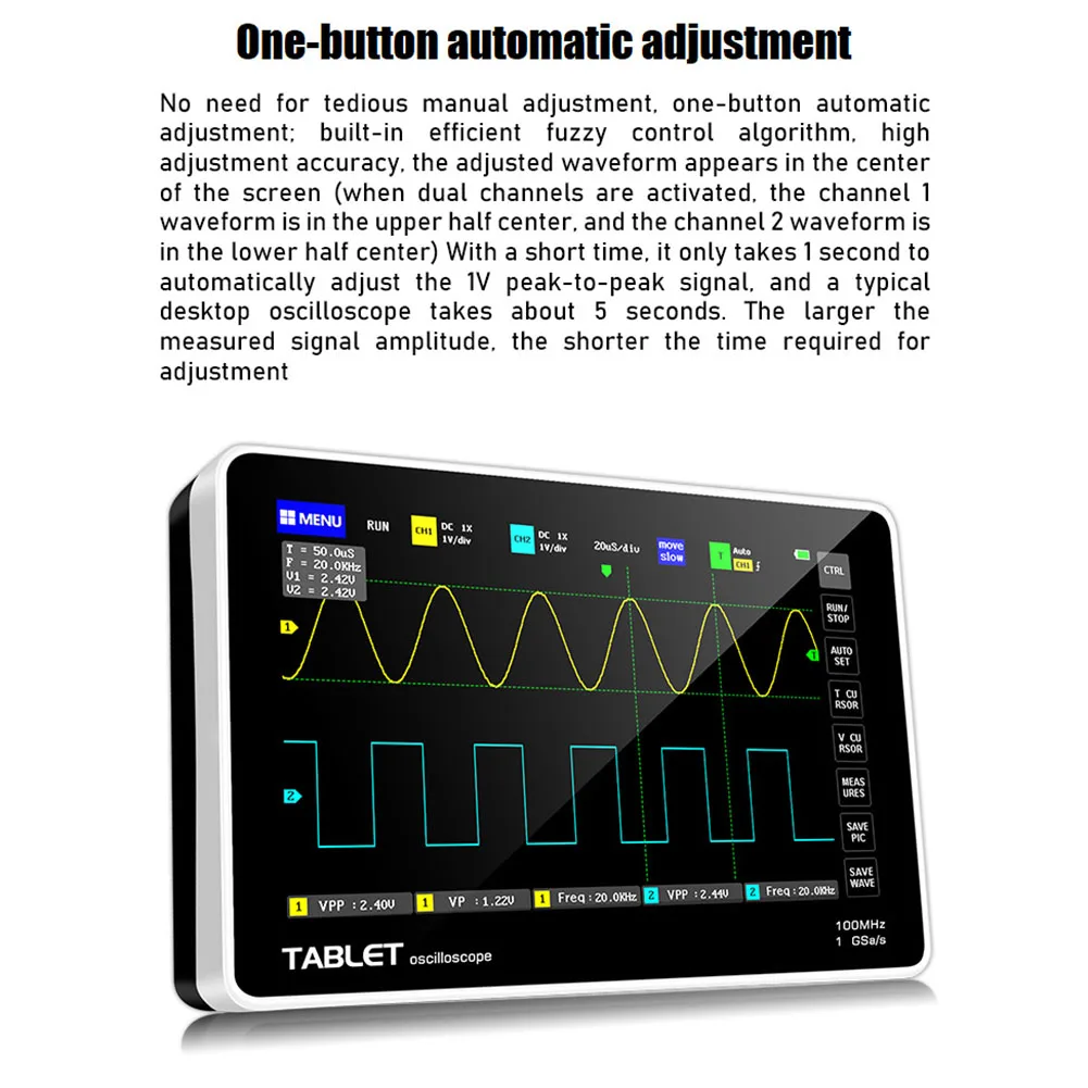 Цифровой планшетный осциллограф 1013D, двухканальный осциллограф с полосой 100 м, частота дискретизации 1GS, высокоточный цифровой мини-осциллограф для планшета