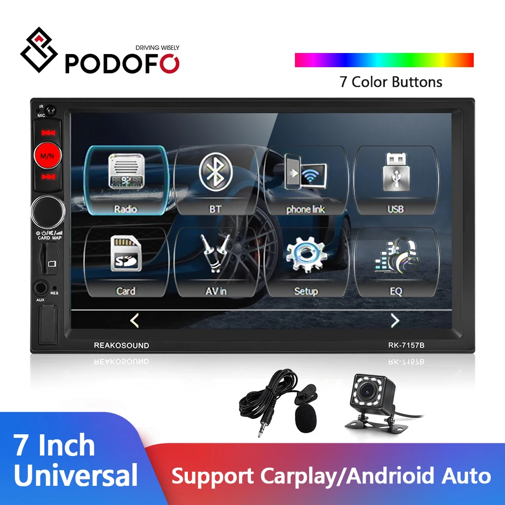 Podofo 2 Din автомагнитола 7 ''TF/USB Carplay/Andrioid Автомобильный мультимедийный плеер с FM Micphone 7 видов цветов свет для Nissan Toyota