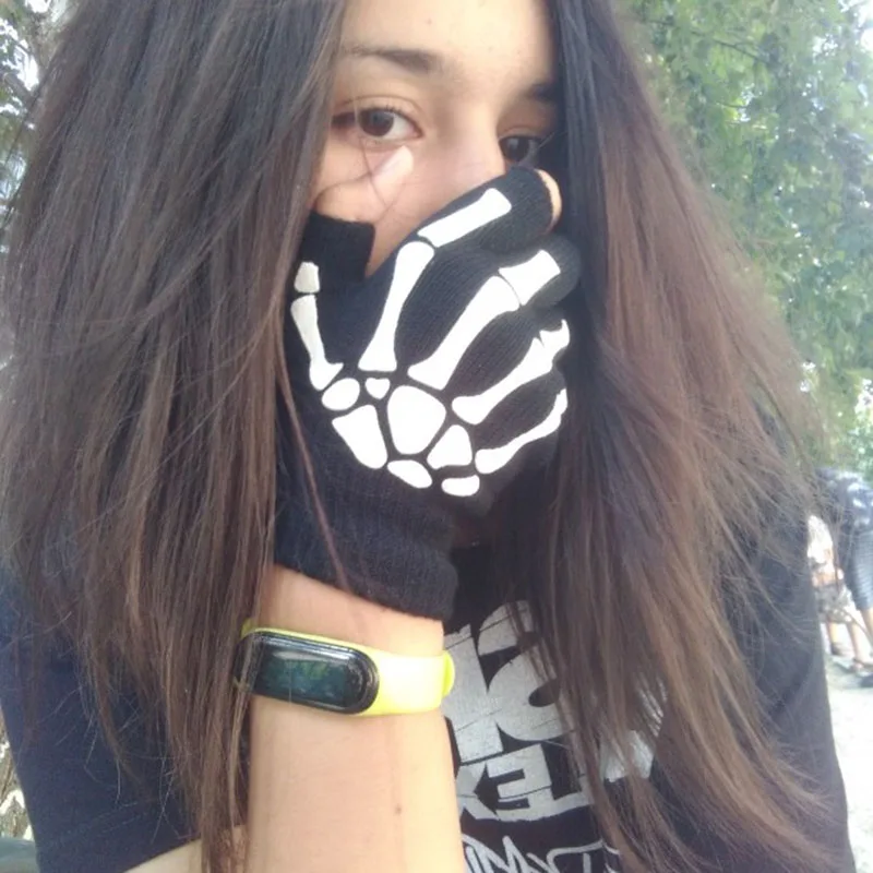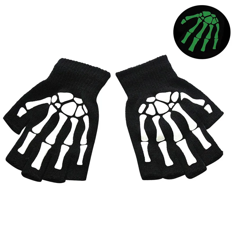 Черные оригинальные вязаные перчатки для взрослых, перчатки на полпальца, перчатки с принтом скелета человека, Нескользящие перчатки на запястье для велоспорта