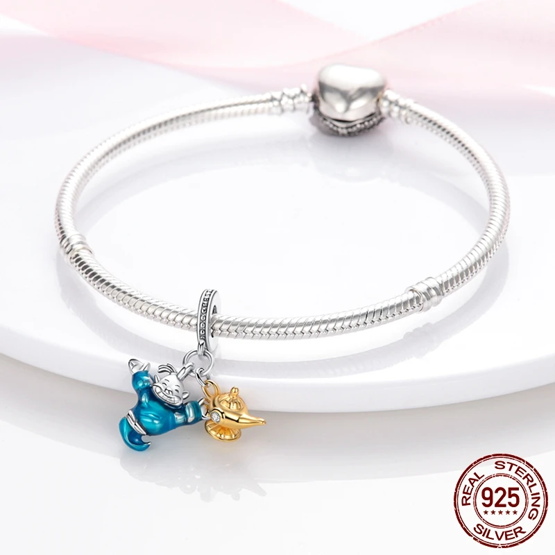 Подвески Aladdin в виде лампы, серебро 925 пробы, подходит для оригинального браслета Pandora, ювелирные изделия сделай сам, подарок для друга