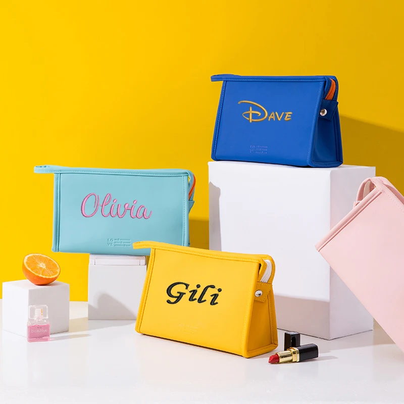 Персонализированная дорожная сумка для макияжа из искусственной кожи с именем на заказ, сумка-тоут для мытья, водонепроницаемая сумка, индивидуальный подарок подружке невесты для женщин